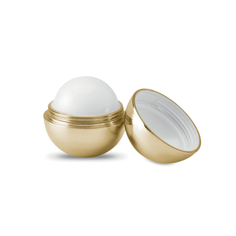 Naturalny balsam do ust w okrągłym opakowaniu z metalicznym wykończeniem. Testowany dermatologicznie. SPF10.