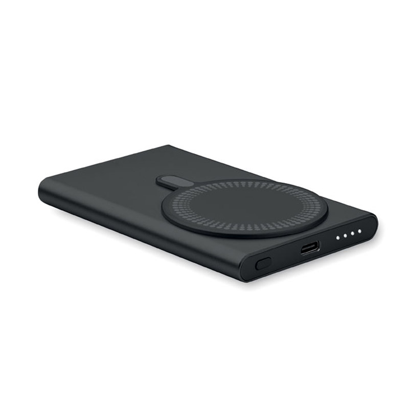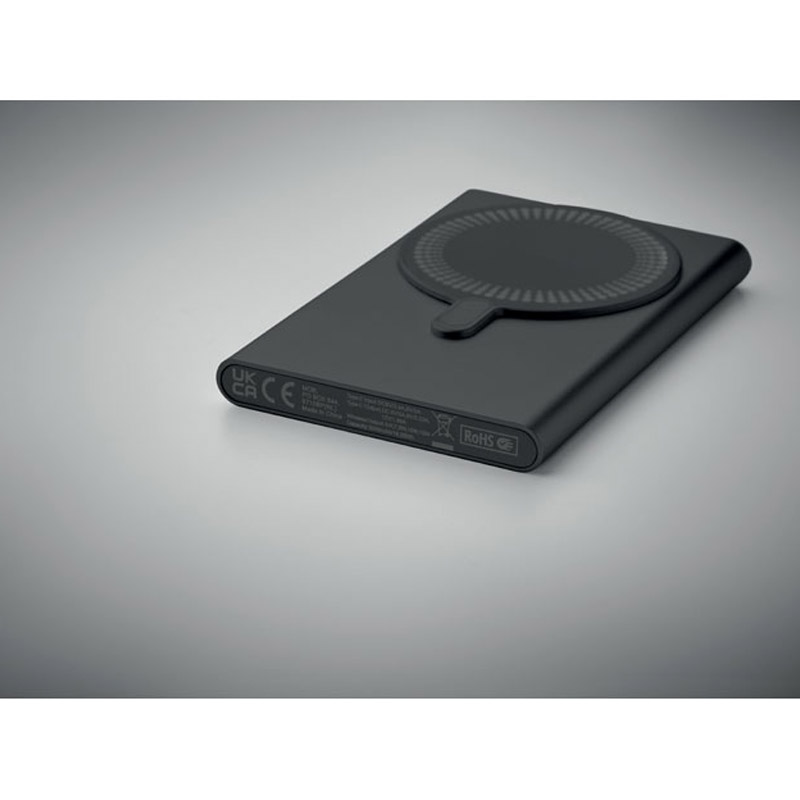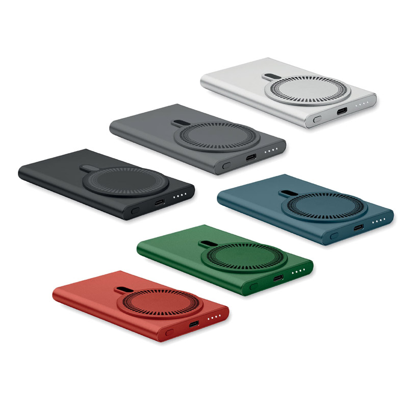 Magnetyczna ładowarka bezprzewodowa (15 W) z aluminium pochodzącego z recyklingu i powerbank (5000 mAh). Wyjście: DC 9V/1,66A. Obsługuje technologię szybkiego ładowania (20 W). Wejście/wyjście: Typ-C. Obsługa Power Delivery (PD) do ładowania najnowszego laptopa MacPro®. Wejście/wyjście: Typ-C. Zawiera magnetyczny pierścień do obsługi niemagnetycznych telefonów z możliwością bezprzewodowego ładowania.