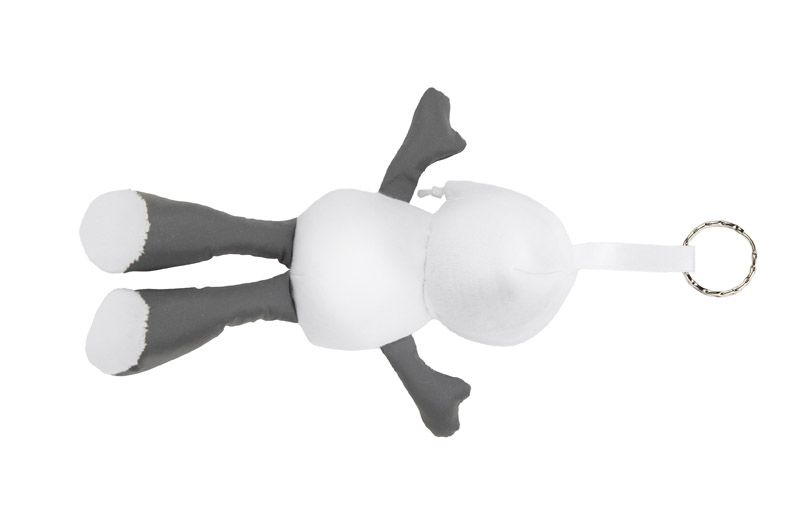TED to przyjemny brelok reklamowy w kształcie misia w sweterku. Głowa, ręce i nogi zostały wykonane z materiału o połyskującej powierzchni, która odbija światło i przyciąga wzrok. Do misia przyszyta jest biała taśma z poliestru, zakończona metalowym kółkiem umożliwiającym przypięcie do plecaka, torby lub kluczy. Sympatyczny i funkcjonalny dodatek – idealny na sezonowe akcje promocyjne.