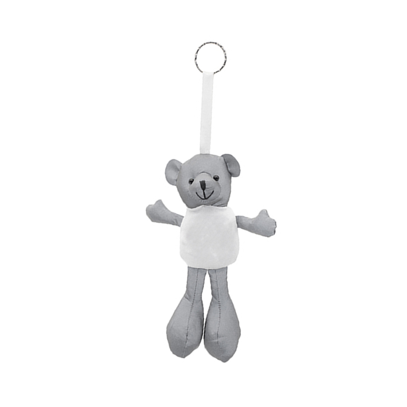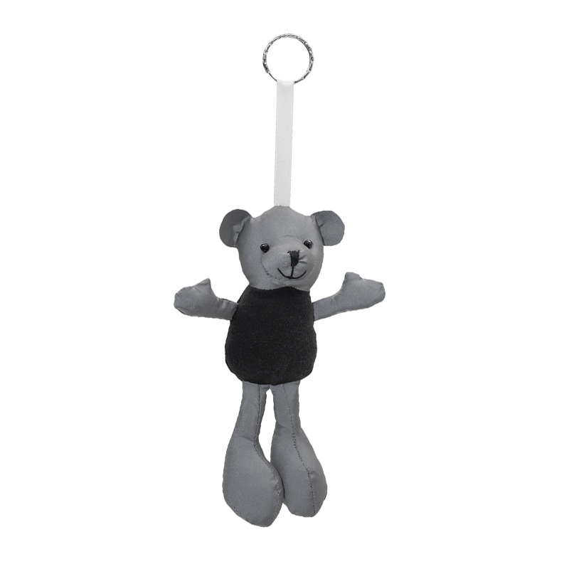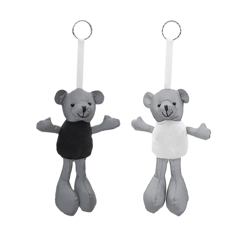 Ręcznie szyty brelok "miś" w koszulce. Wykonany z materiału odbijającego światło.