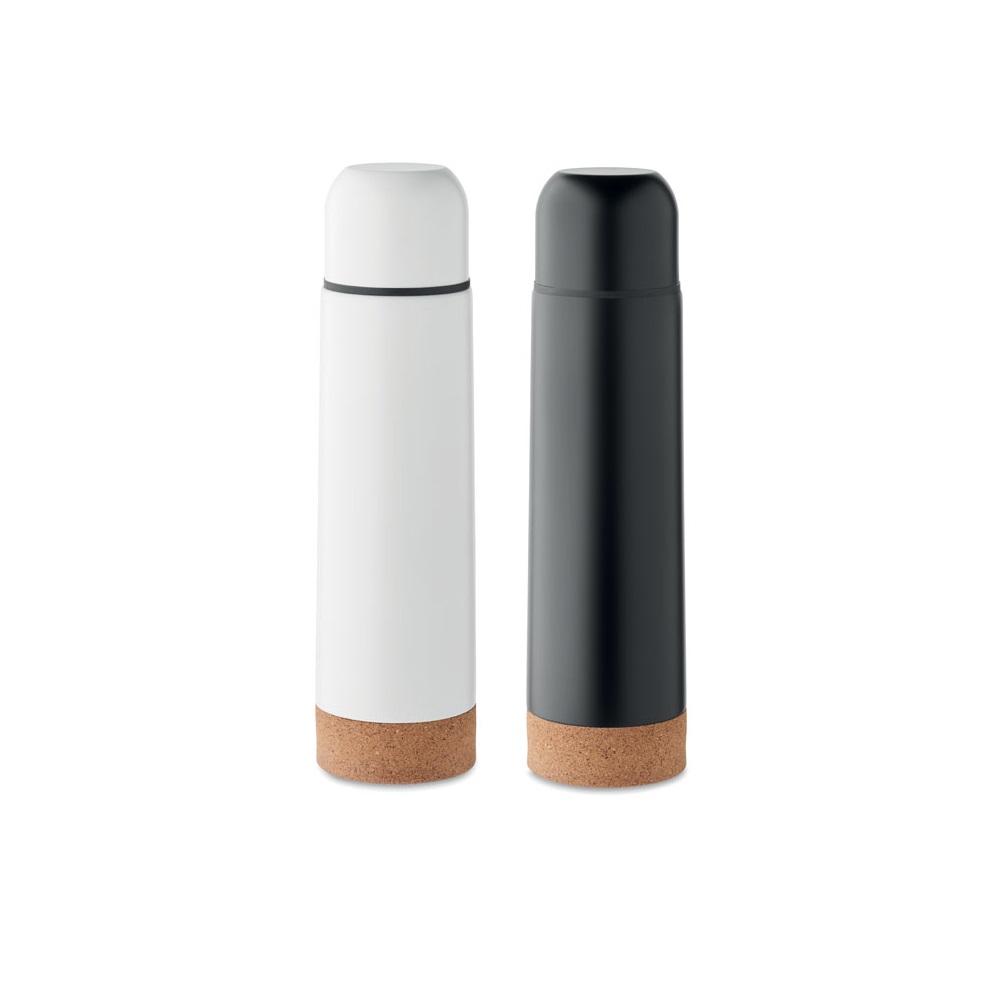 Termos izolowany próżniowo z recyklingowanej stali nierdzewnej z korkową podstawą. Nie przecieka. Pojemność: 500 ml. (90% stali nierdzewnej z recyklingu i 10% stali nierdzewnej).