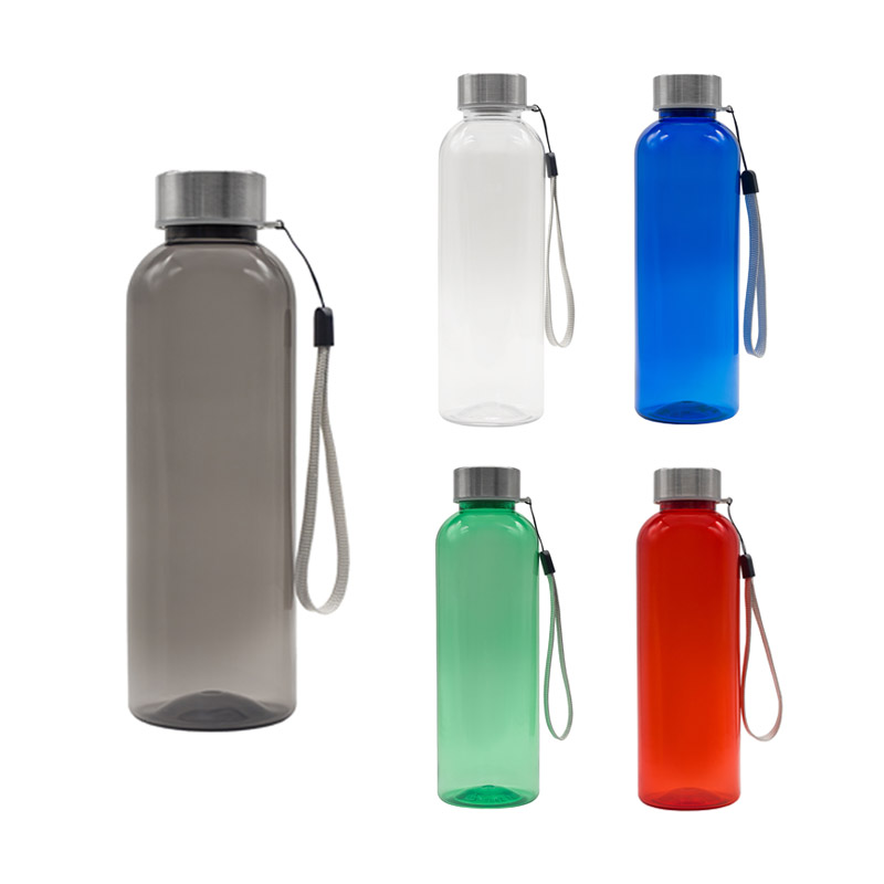 Szczelna butelka wykonana z RPET, z paskiem na nadgarstek. Pojemność 500 ml.