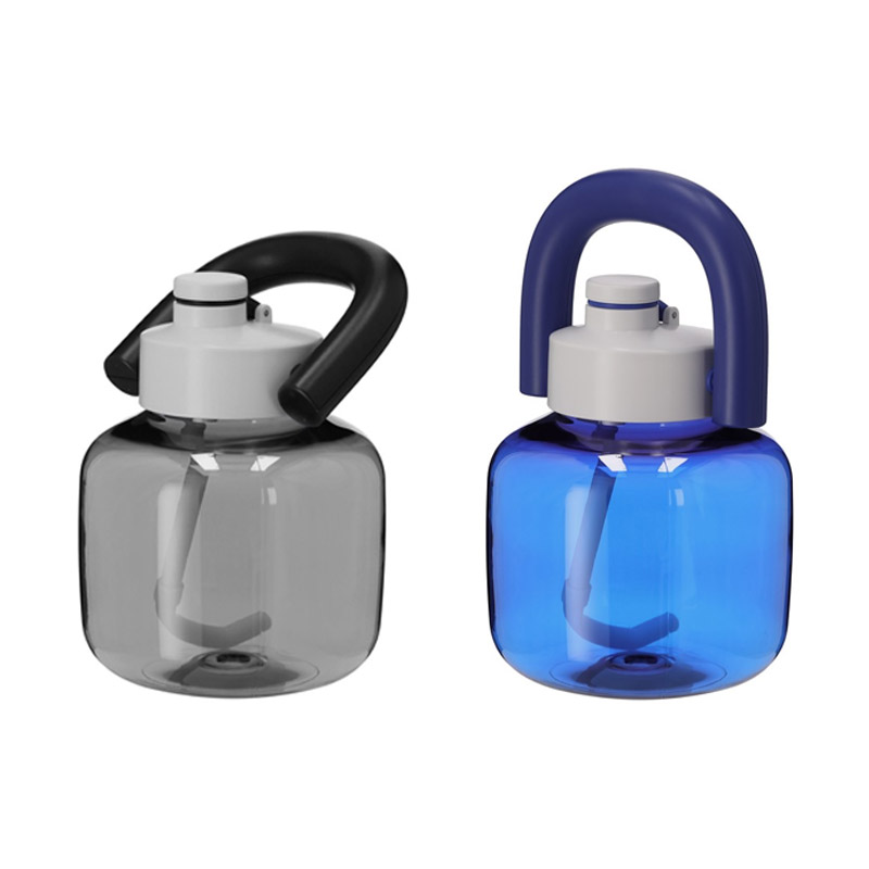Butelka sportowa 1800 ml ze słomką, przezroczysta, z uchwytem ułatwiającym noszenie, produkt wykonany z RPET