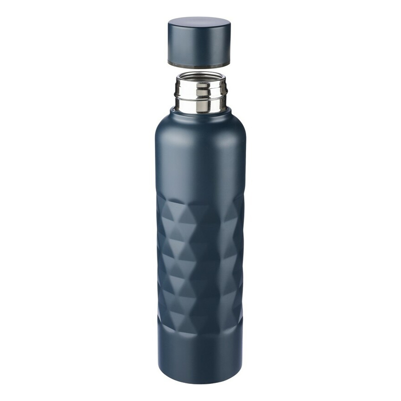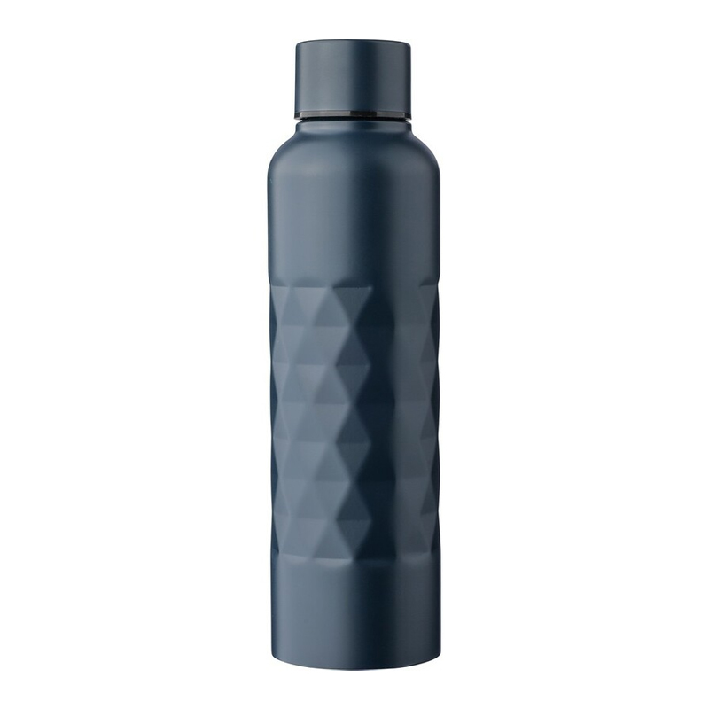Butelka sportowa 800 ml ze stali nierdzewnej, pojedyncza warstwa ze stali 304, zakręcane wieczko, tekstura w kształcie diamentu, ikona recyklingu na produkcie, zapakowana w brązowe kartonowe pudełko