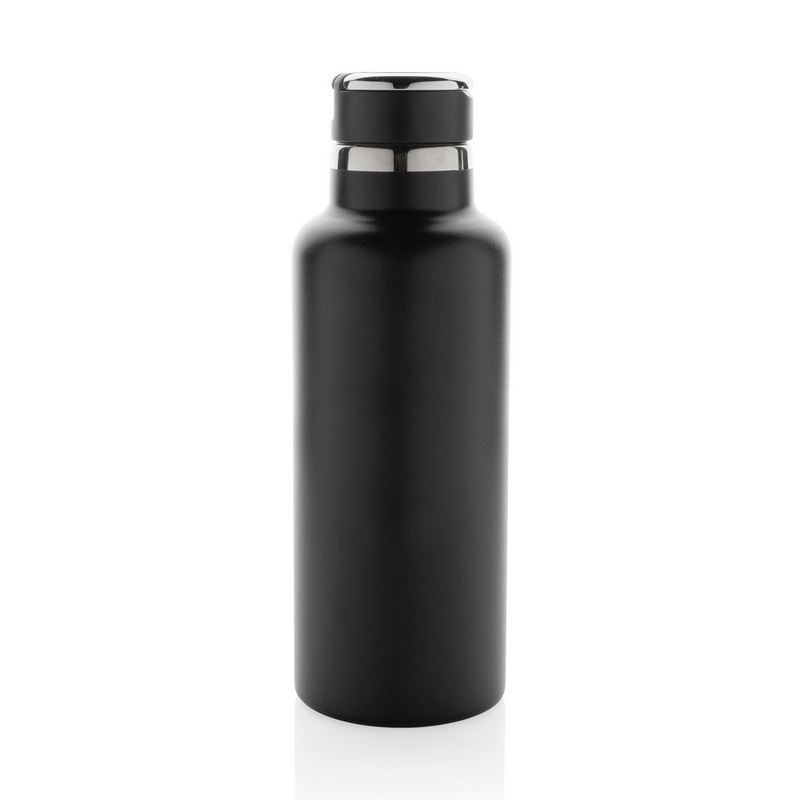 Butelka termiczna 600 ml, składany ustnik w nakrętce, podwójne ścianki z próżnią pomiędzy, utrzymuje temperaturę napojów ciepłych do 5 godzin oraz zimnych do 15 godzin, wykonana z materiałów pochodzących z recyklingu z certyfikatem RSC, całkowita zawartość materiału z recyklingu obliczona w oparciu o wagę całkowitą przedmiotu: 83%, w pudełku z papieru kraftowego z certyfikatem FSC®, nie zawiera BPA, ślad węglowy produktu: 2,49 kg CO2