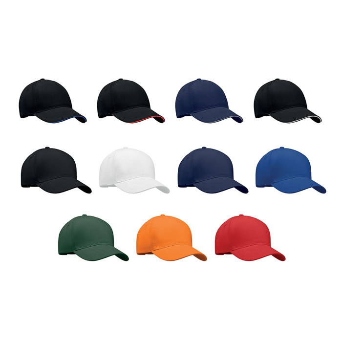 5-panelowa czapka z daszkiem ze szczotkowanej bawełny twill 260 gm/m2 ze srebrną stalową sprzączką. 4 haftowane oczka w dopasowanym kolorze. Rozmiar 7 1/4.