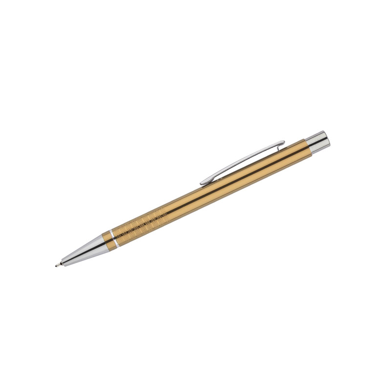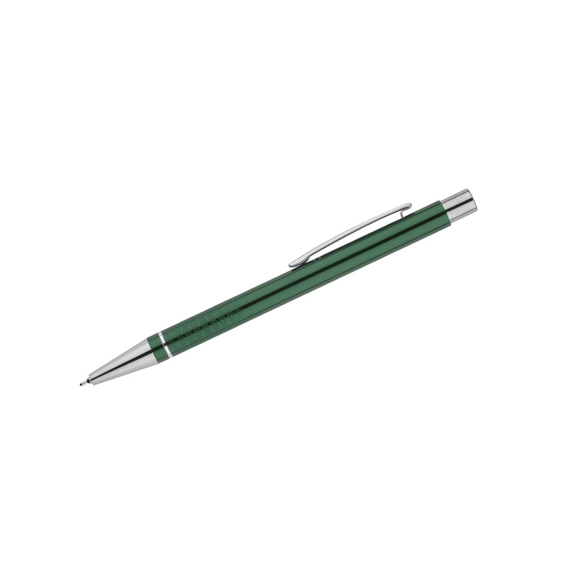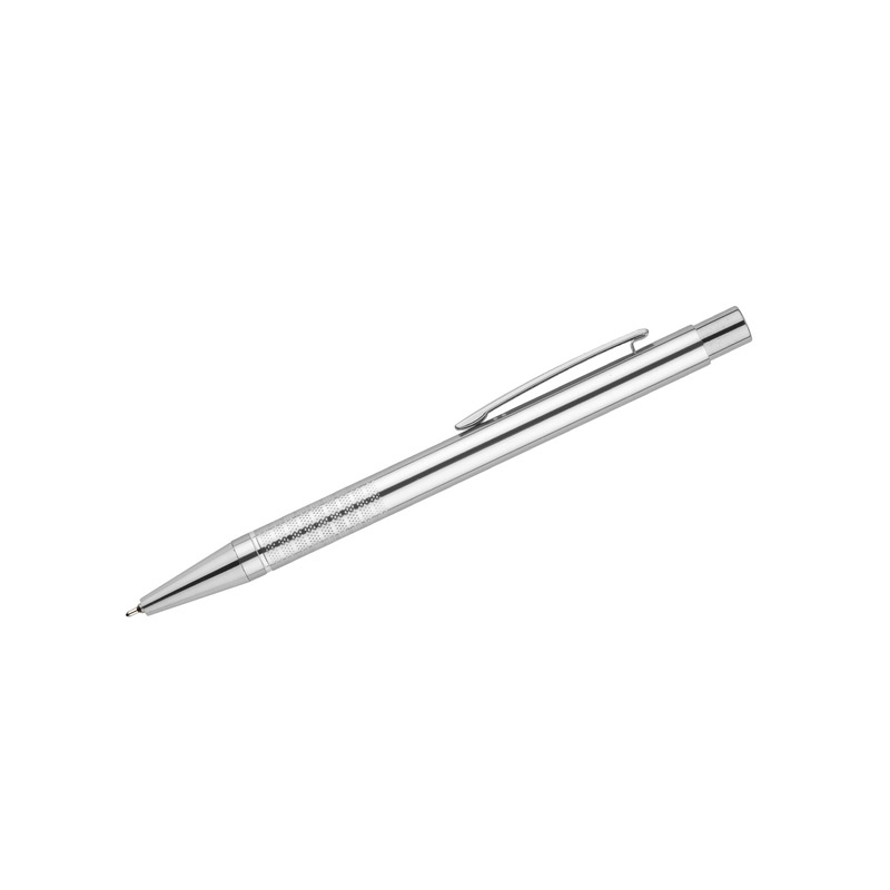 Długopis BONITO to elegancki metalowy długopis w metalicznych kolorach z chromowanymi wykończeniami. Wykonany z wysokiej jakości aluminium, korpus długopisu ozdobiony jest srebrnym ringiem oraz paskami o delikatnie chropowatej strukturze. Długopis wyposażony jest w wkład z tuszem półżelowym w kolorze czarnym o grubości 0,7 mm.