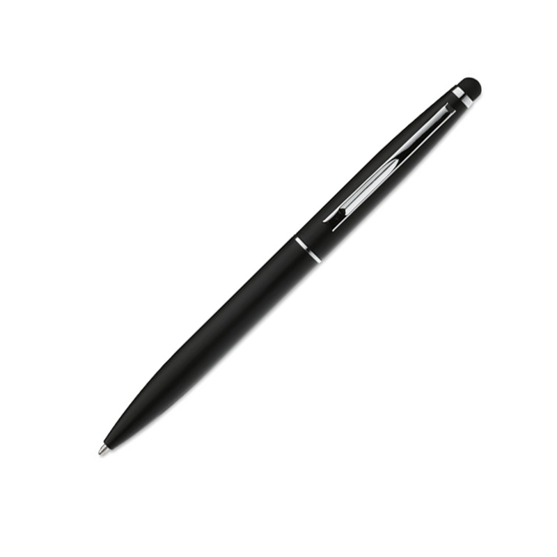Aluminiowy, przekręcany długopis z rysikiem. Matowe wykończenie. Niebieski wkład.