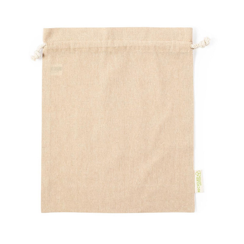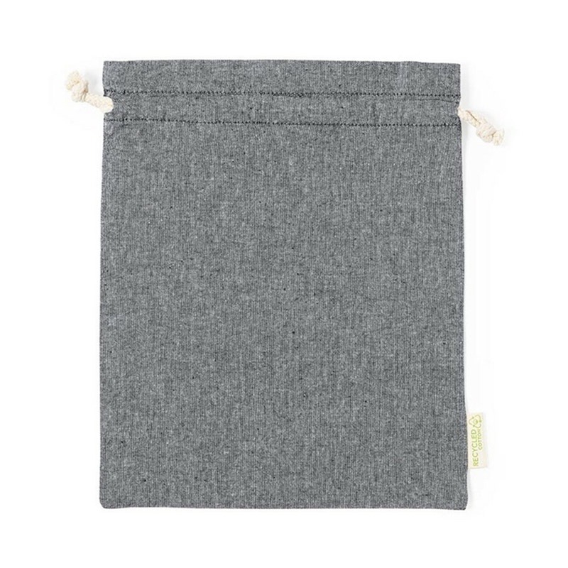 Worek ze sznurkiem z bawełny z recyklingu, duży, zgodny z certyfikatem GRS (Global RecycIed Standard)