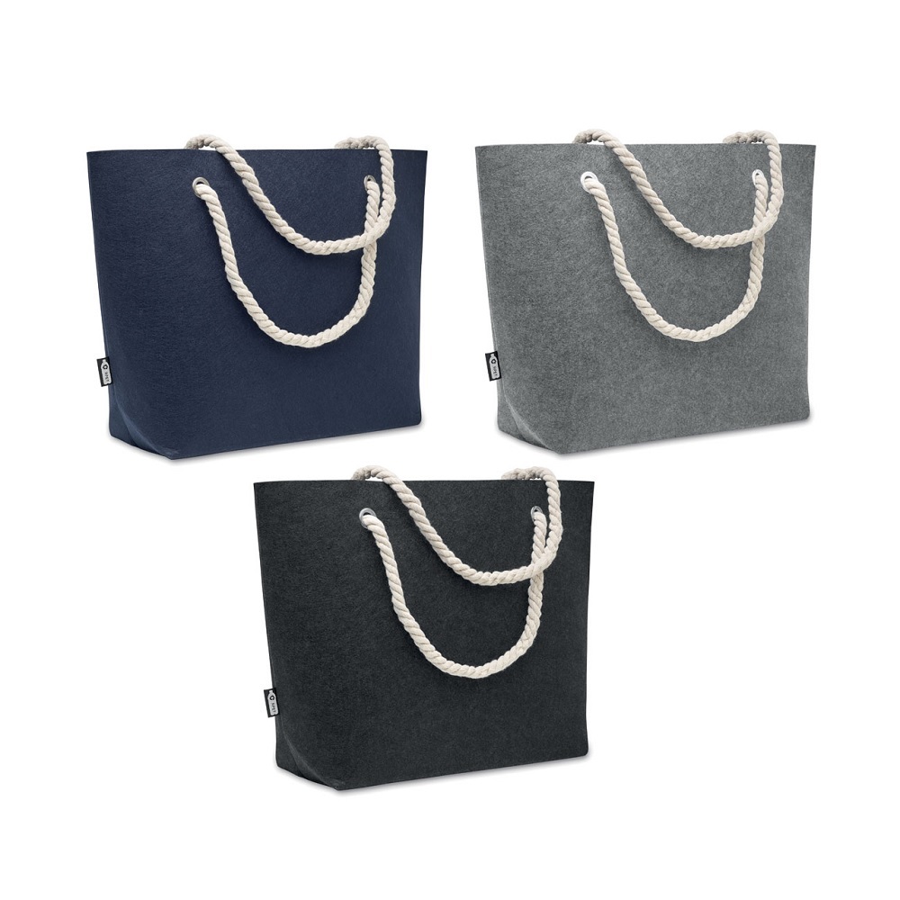 Filcowa torba plażowa lub na zakupy z RPET z uchwytem sznurkowym. Grubość filcu: 2 mm.