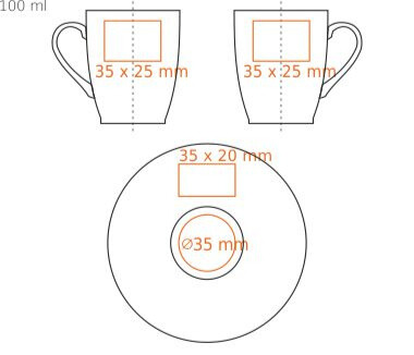 Filiżanka reklamowa o klasycznych, obłych kształtach. Filiżanka dostępna w wersji espresso