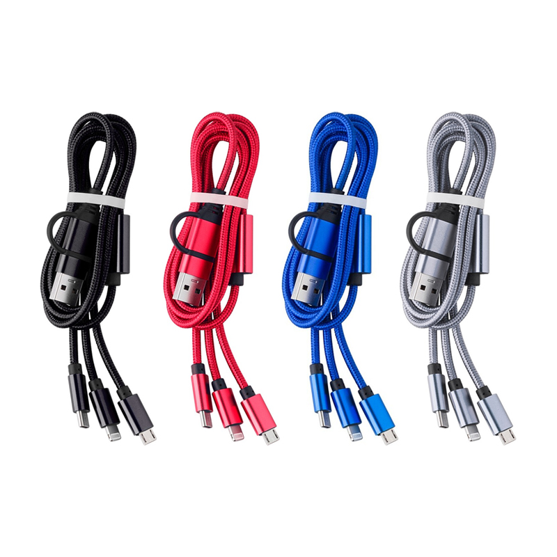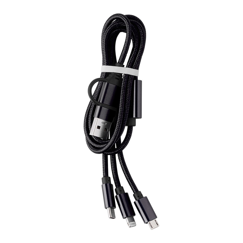 Kabel do ładowania z 4 końcówkami: USB, USB C, micro USB oraz końcówką kompatybilną z urządzeniami iOS