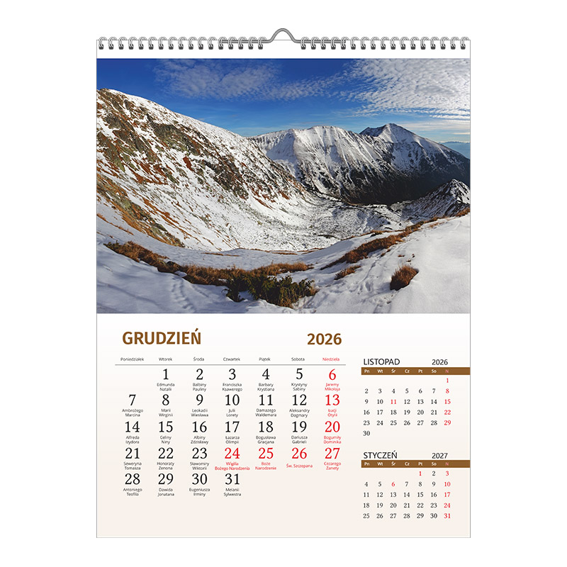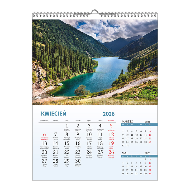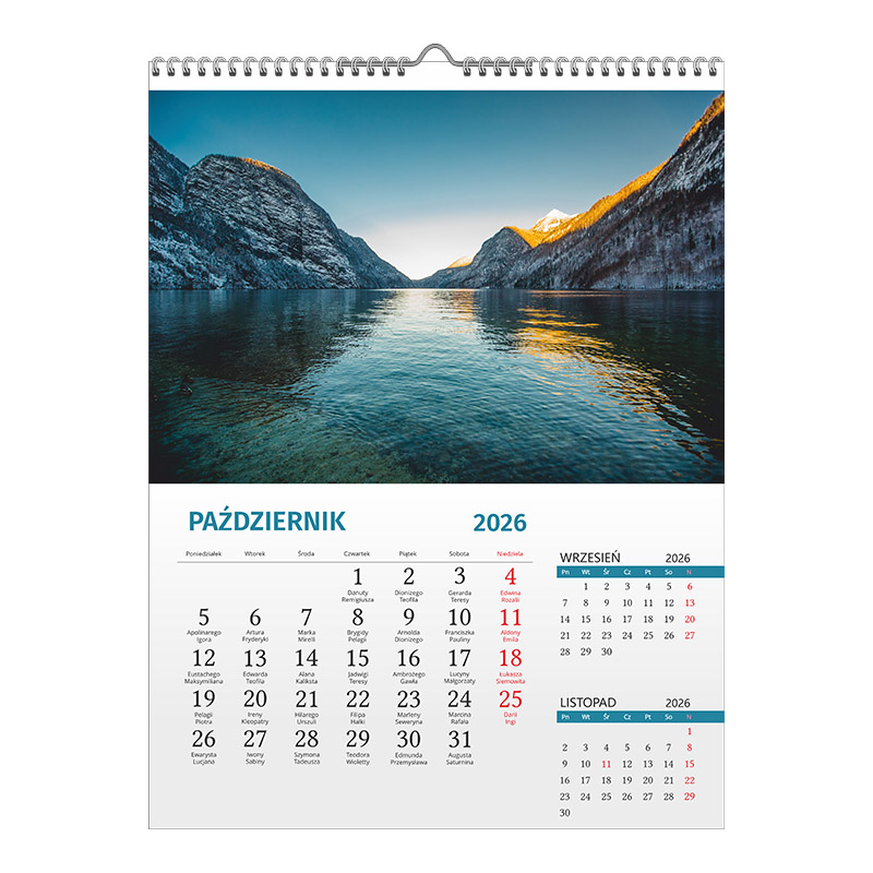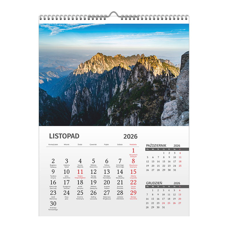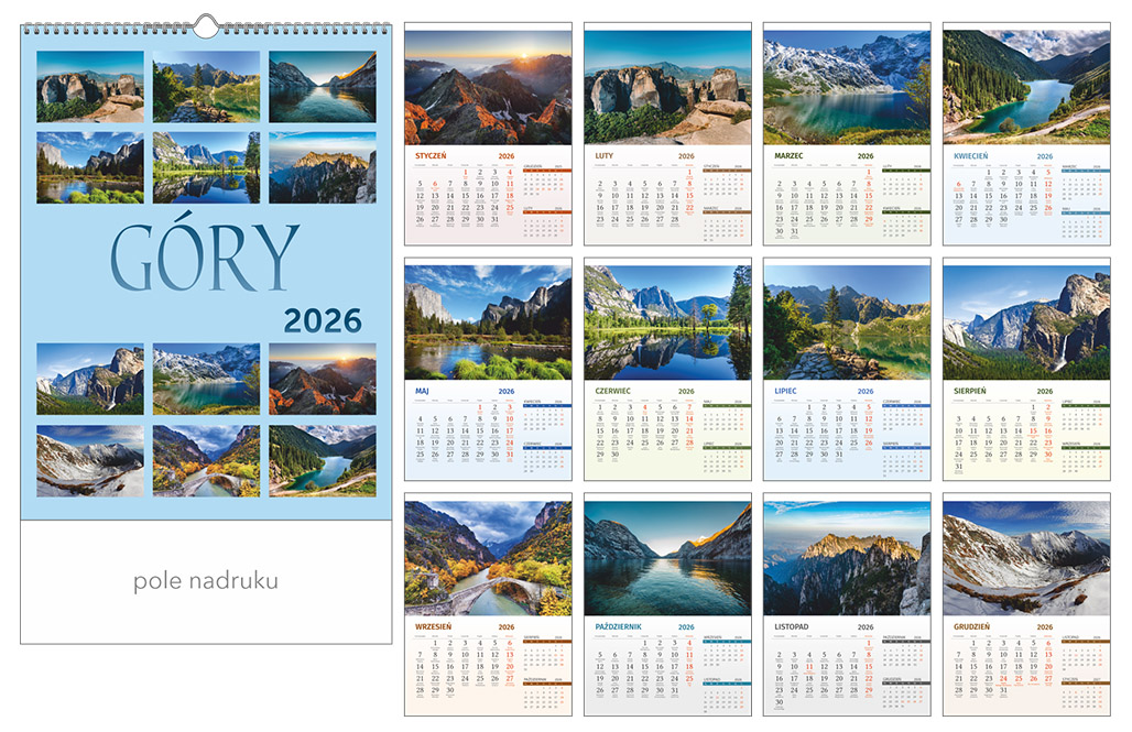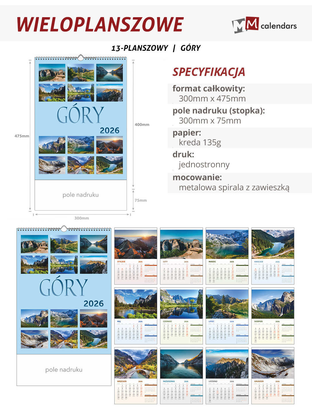 Kalendarz 13-planszowy z możliwością naniesienia własnego logo.