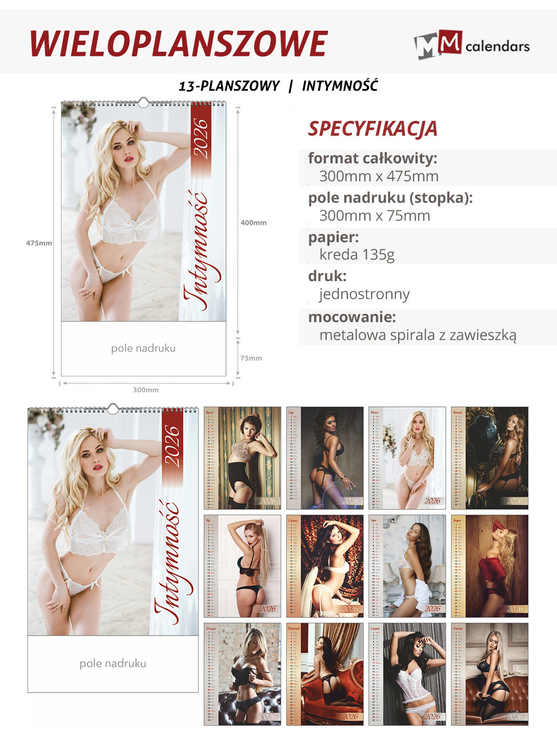 Kalendarz 13-planszowy z możliwością naniesienia własnego logo.