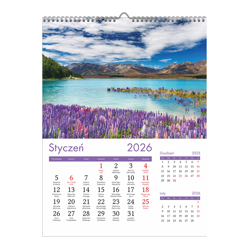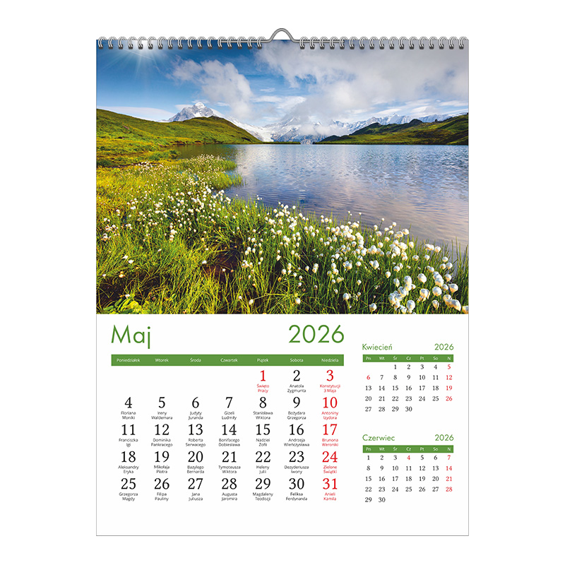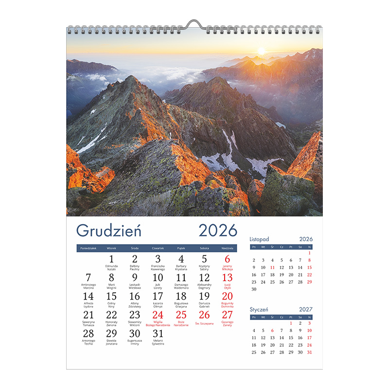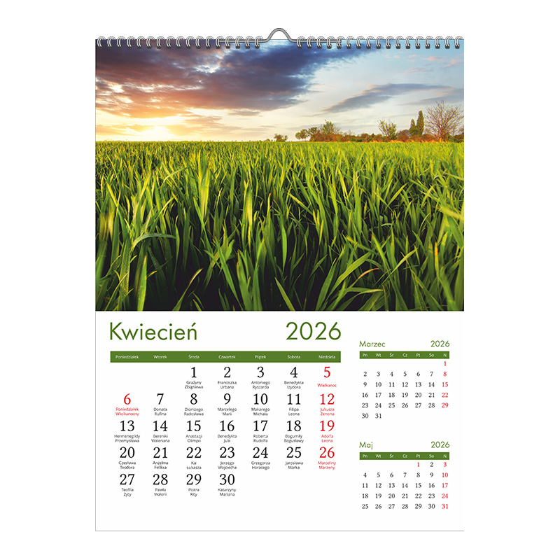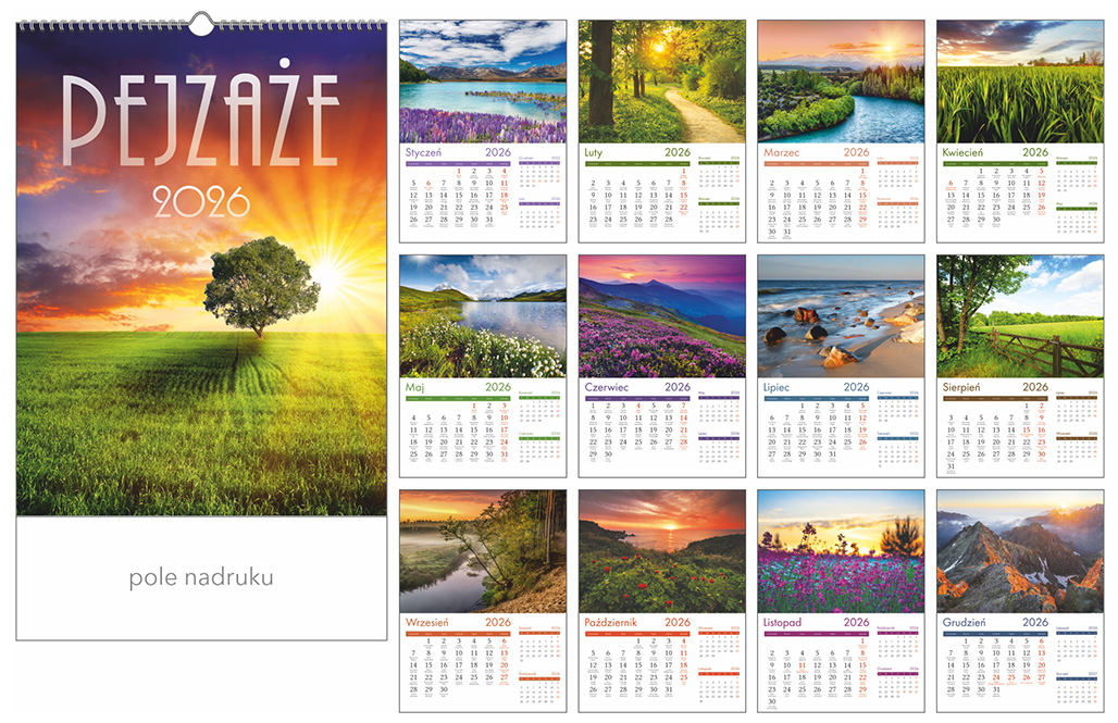 Kalendarz 13-planszowy z możliwością naniesienia własnego logo.