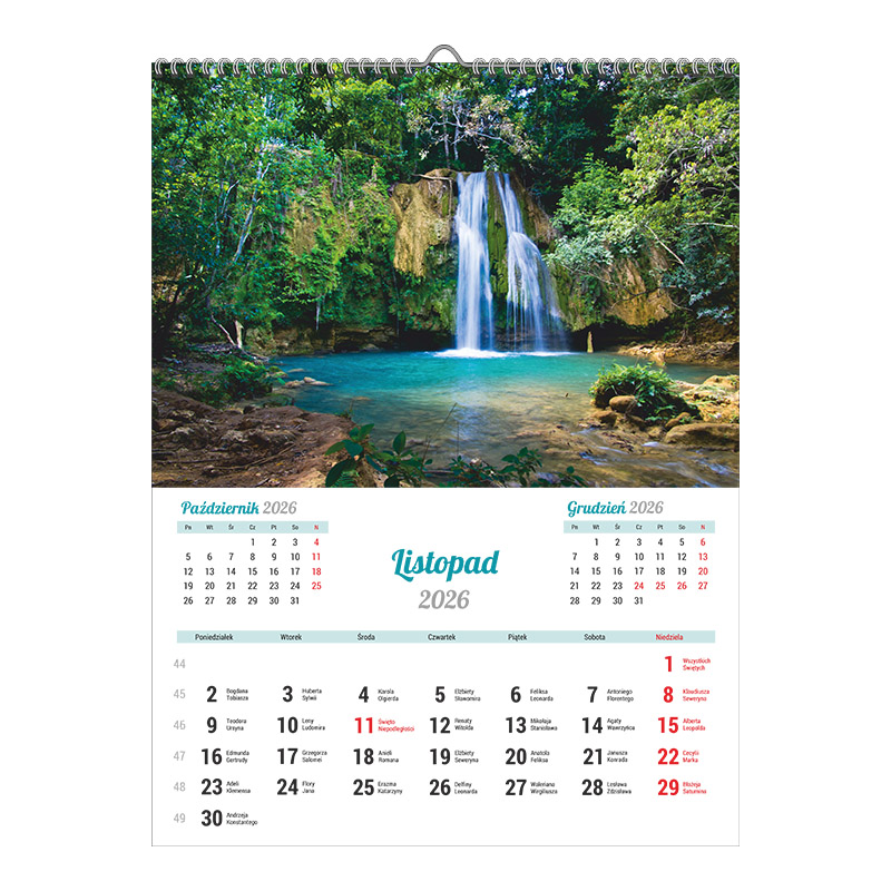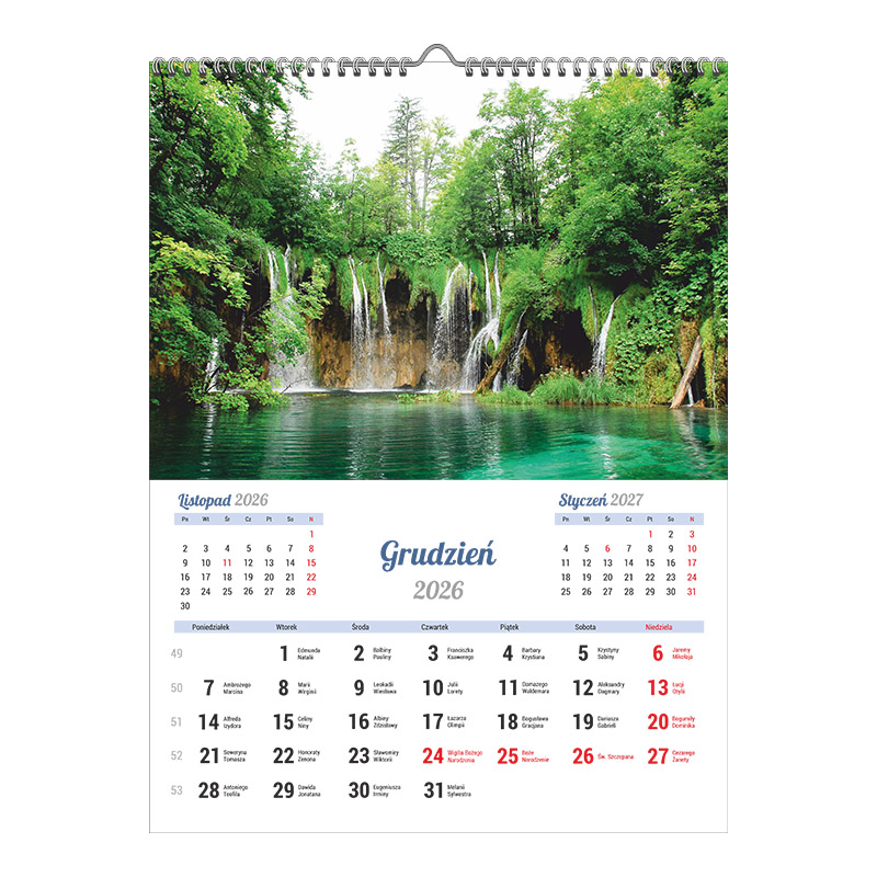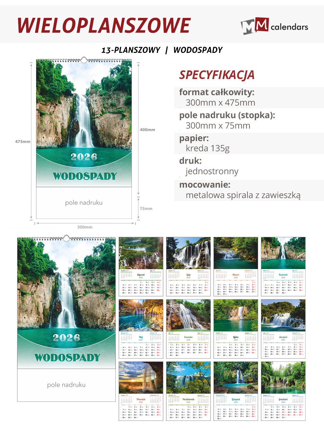 Kalendarz 13-planszowy z możliwością naniesienia własnego logo.