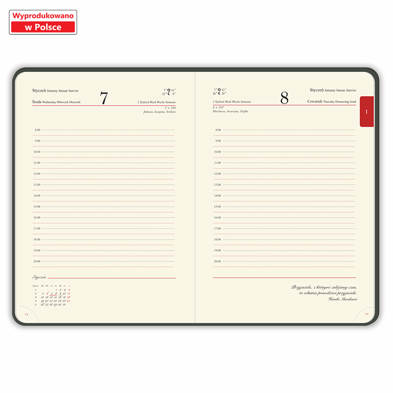 Układ: dzień na stronie, sobota i niedziela na jednej stronie