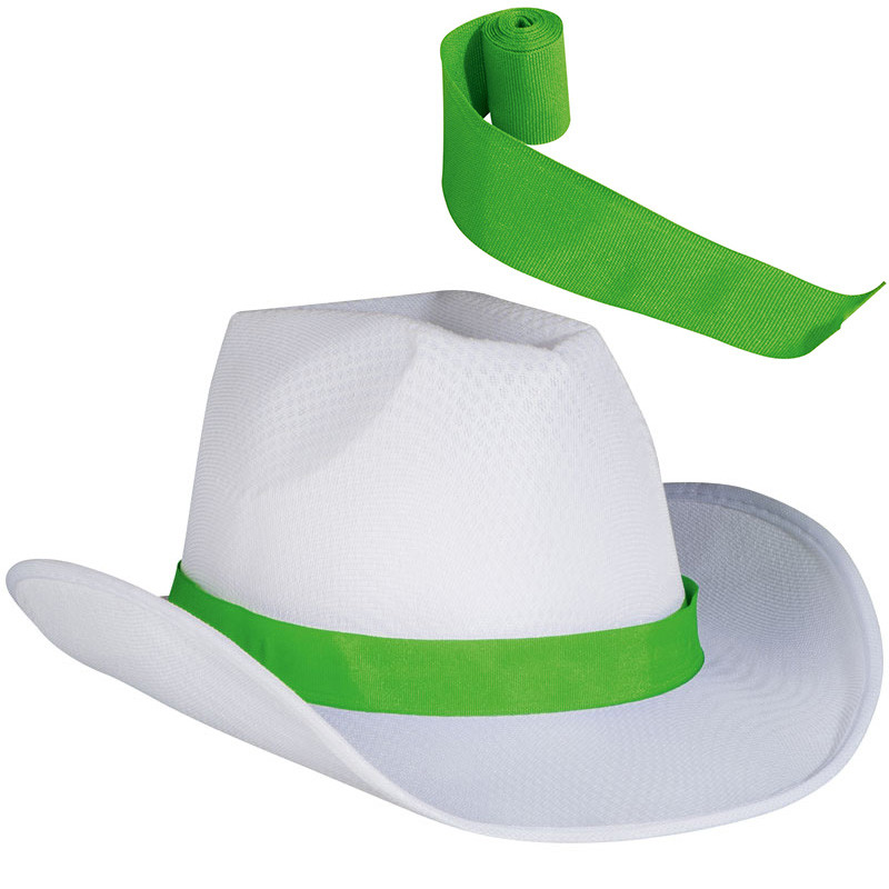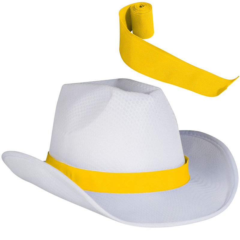 Biały kapelusz z kolorową tasiemką