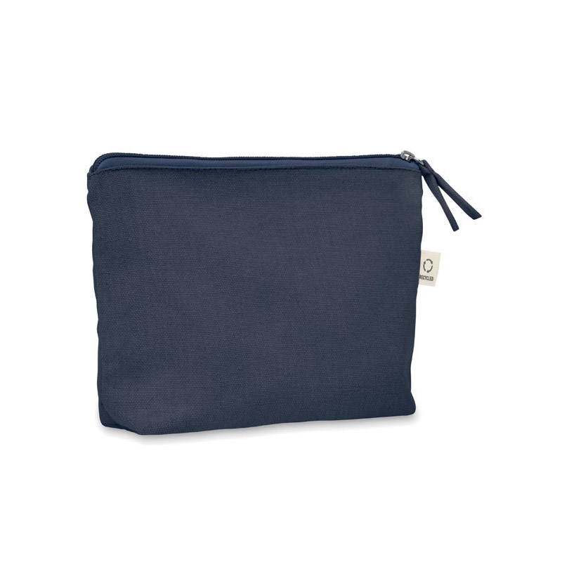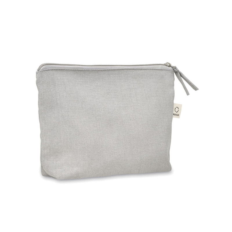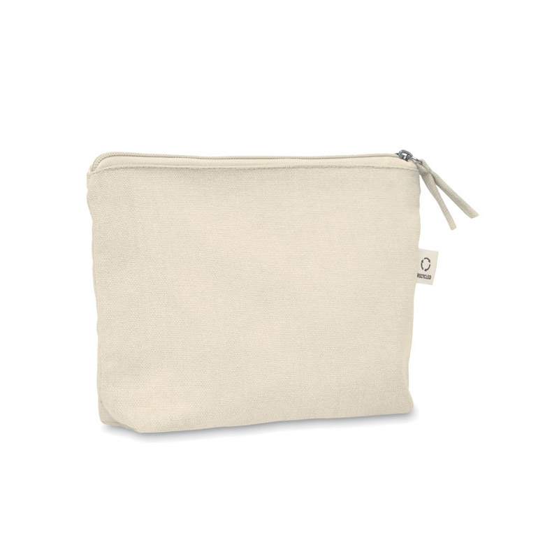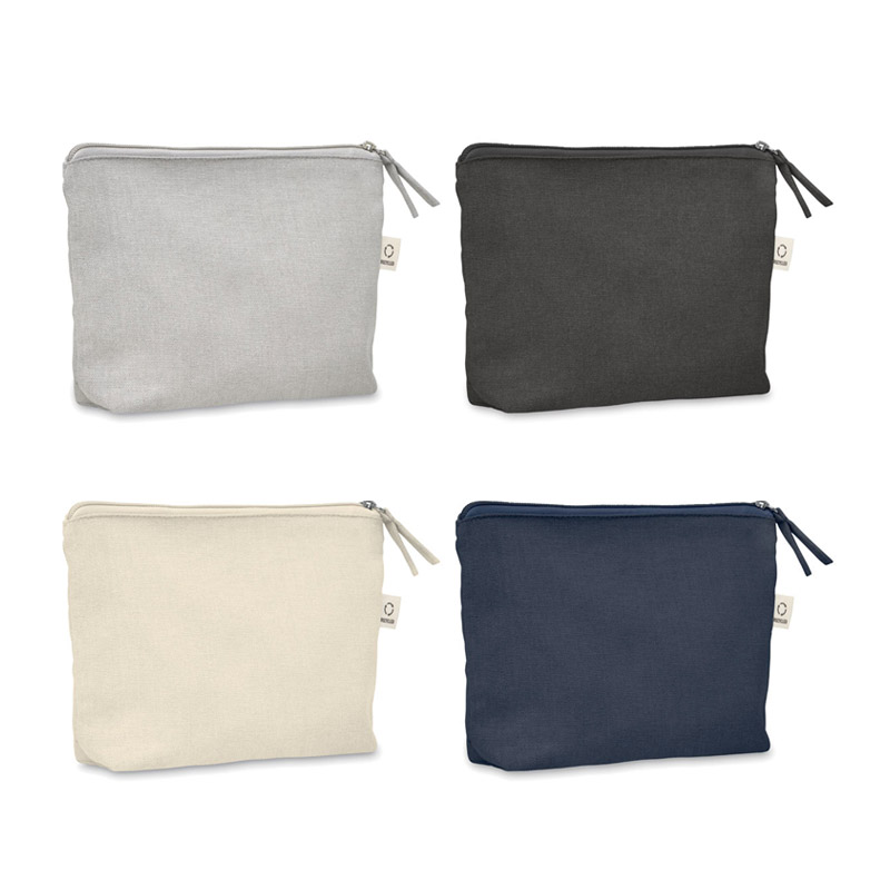Torebka na kosmetyki lub inne akcesoria z materiału z recyklingu (70% bawełny z recyklingu i 30% poliestru RPET) z dopasowanym zamkiem błyskawicznym. 320 gr/m². Ten produkt może się kurczyć po zadrukowaniu.