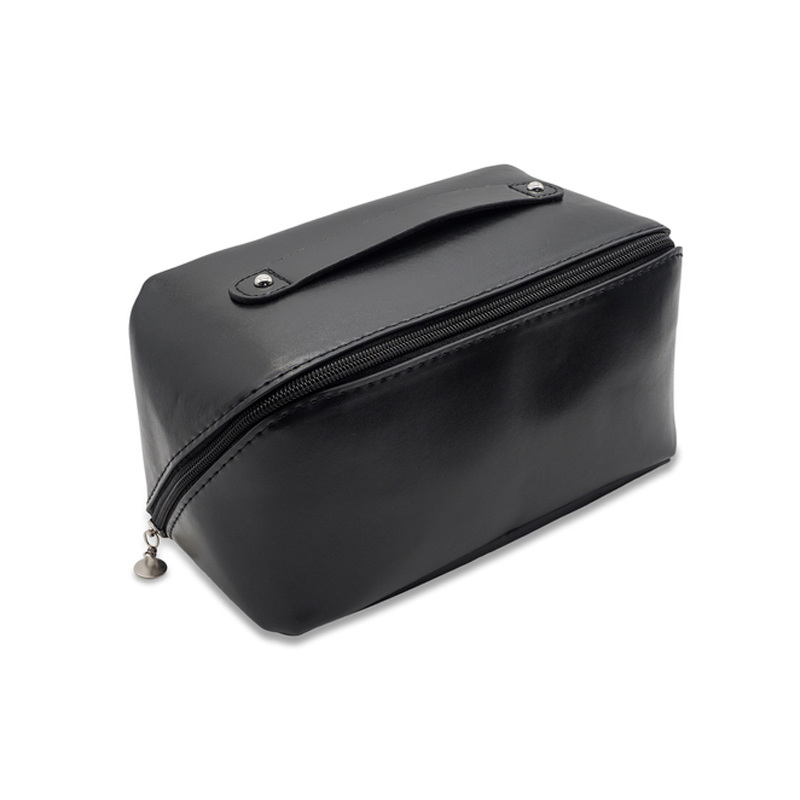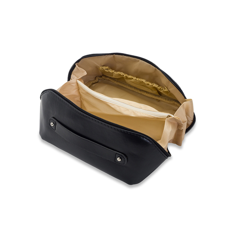 Kosmetyczka z ekoskóry, z uchwytem. Pojemne wnętrze z przegródkami gwarantuje łatwy dostęp i bezpieczne przechowywanie kosmetyków i akcesoriów. Praktyczna w podróży i na co dzień.