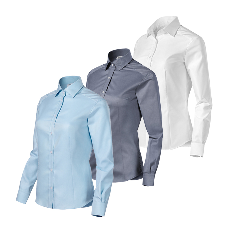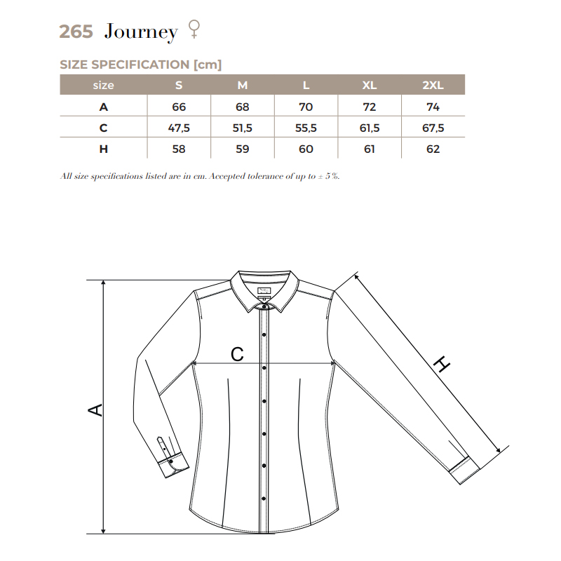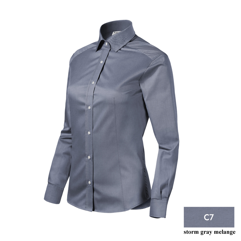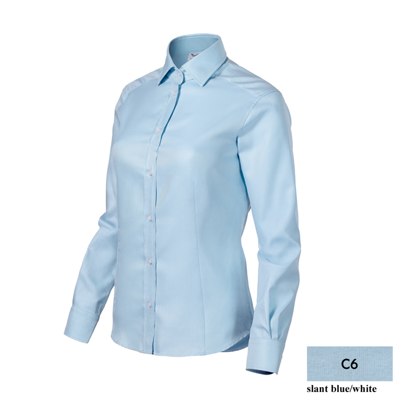 zaprojektowany przez czołowego czeskiego krawca Romana Humlíčka. Przędza z bardzo długich włókien, dopasowany krój z bocznymi szwami, podwójny karczek i zaszewki z tyłu. Zaszewki w talii z przodu, kołnierzyk koszulowy, części przednie wykończone plisą. Długie rękawy z półokrągłym mankietem na 2 guziki, perłowe guziki w kolorze 00 (2 zapasowe guziki), zaokrąglona dolna krawędź