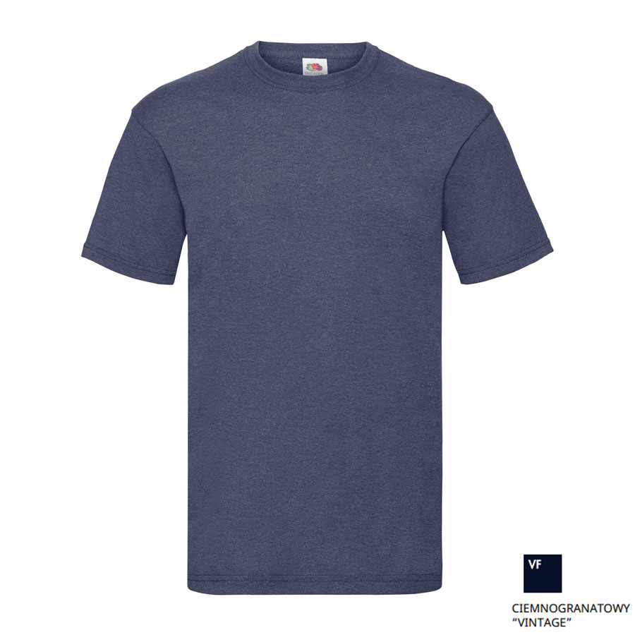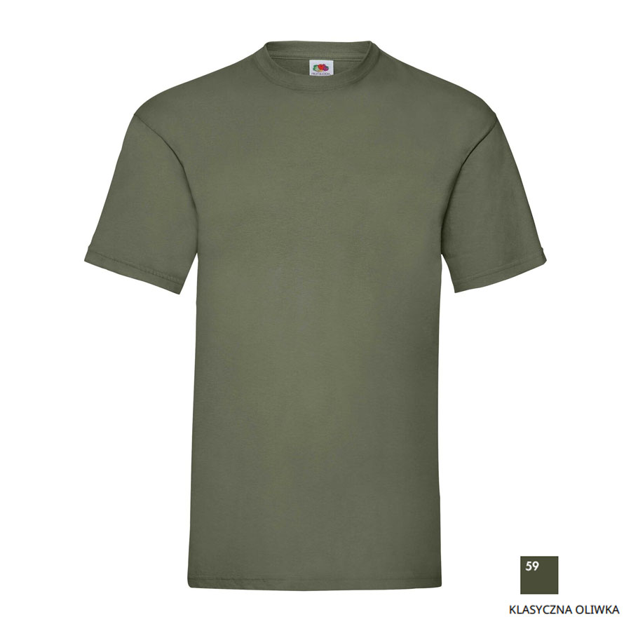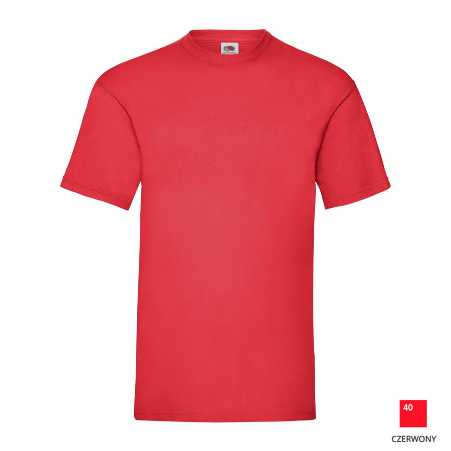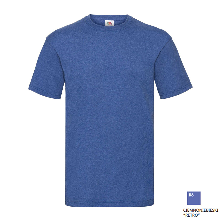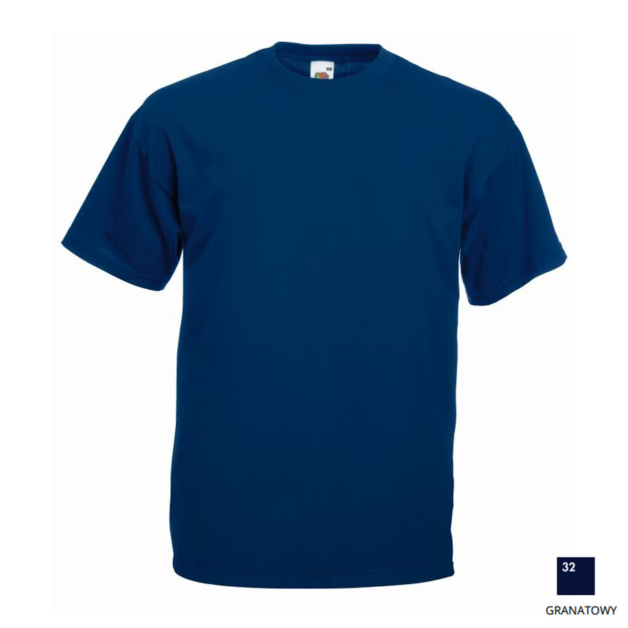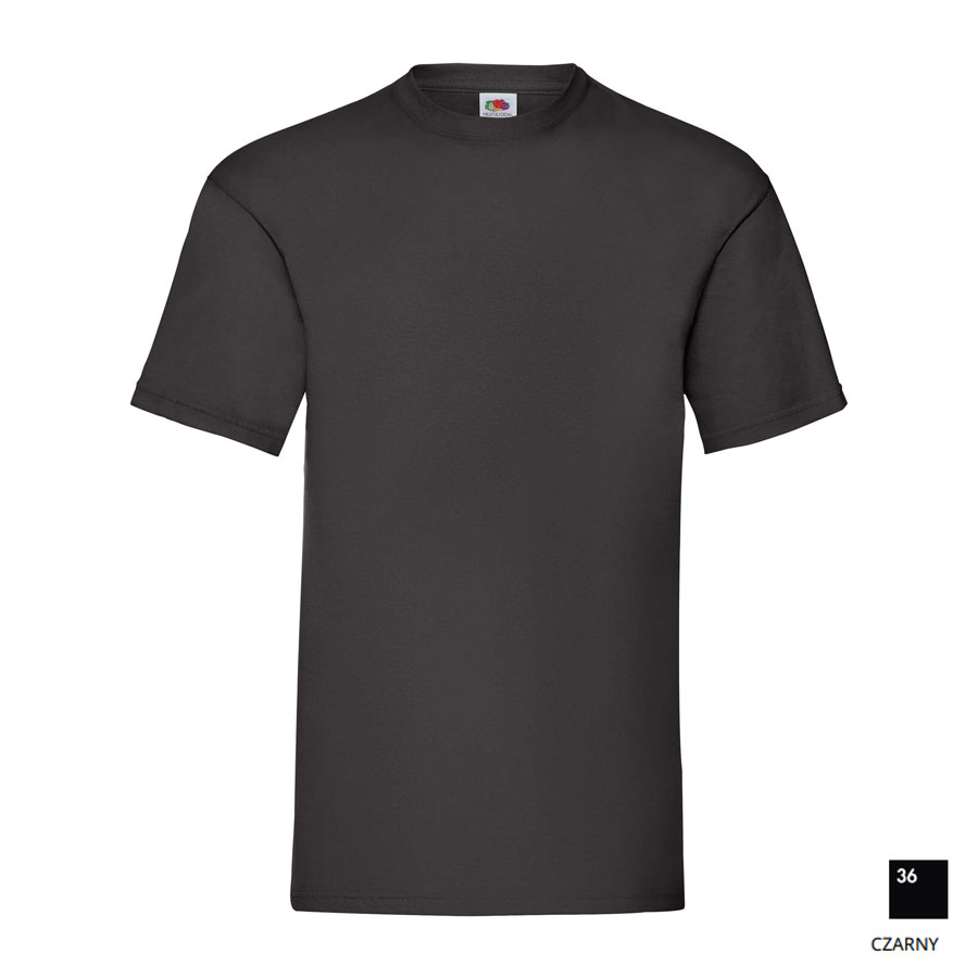 Koszulki męskie Fruit of the Loom o gramaturze 160/165g. Wokół szyi ściągacz z dodatkiem Lycry, połączony z koszulką podwójnym szwem, zszyty w dwóch miejscach. Rękawy oraz dół koszulki zakończone podwójnym ściegiem. Na karku taśma wzmacniająca. Bez szwów bocznych.