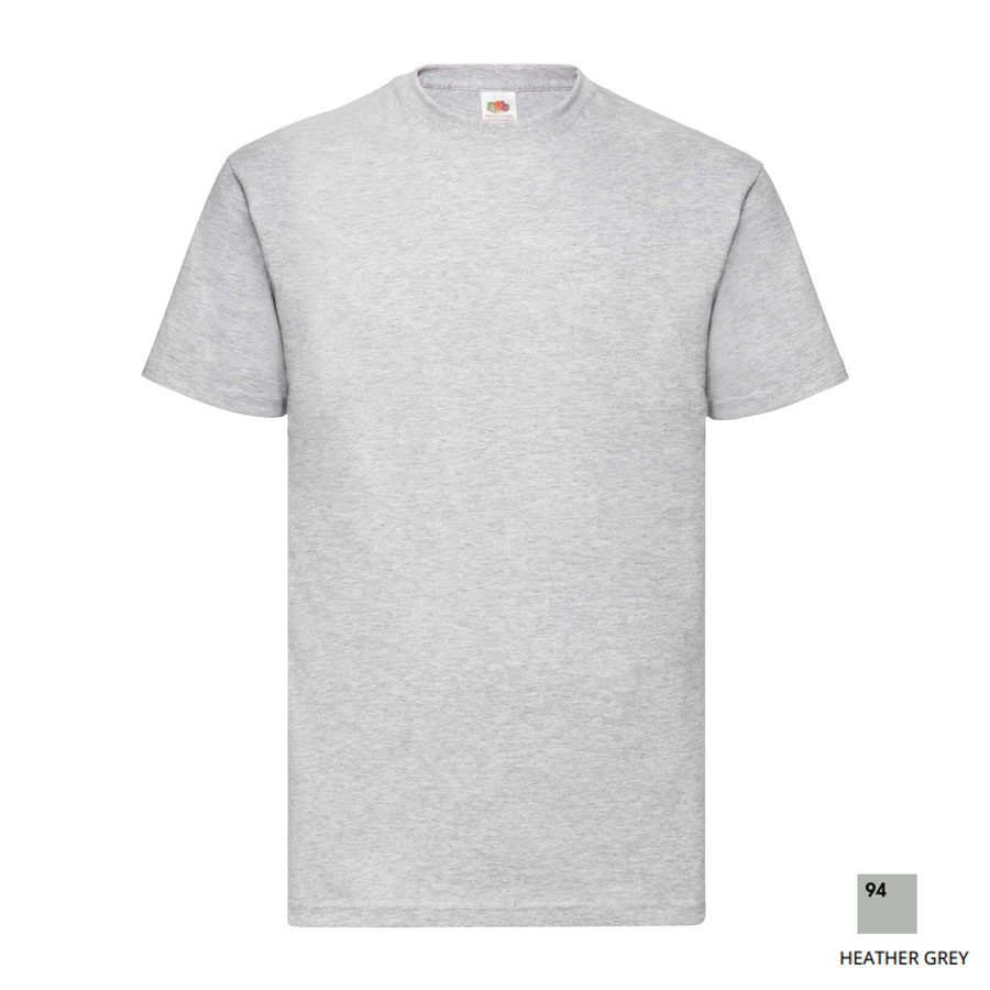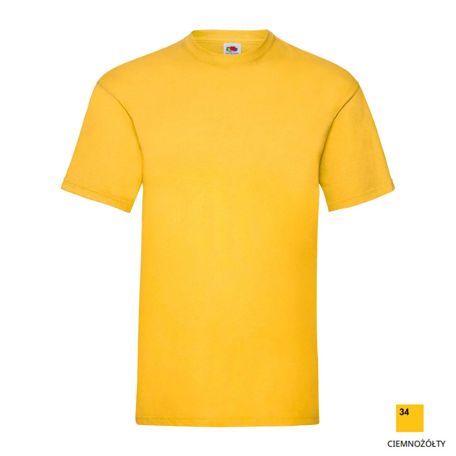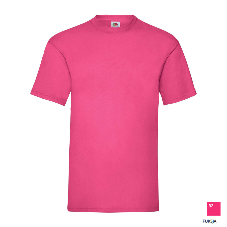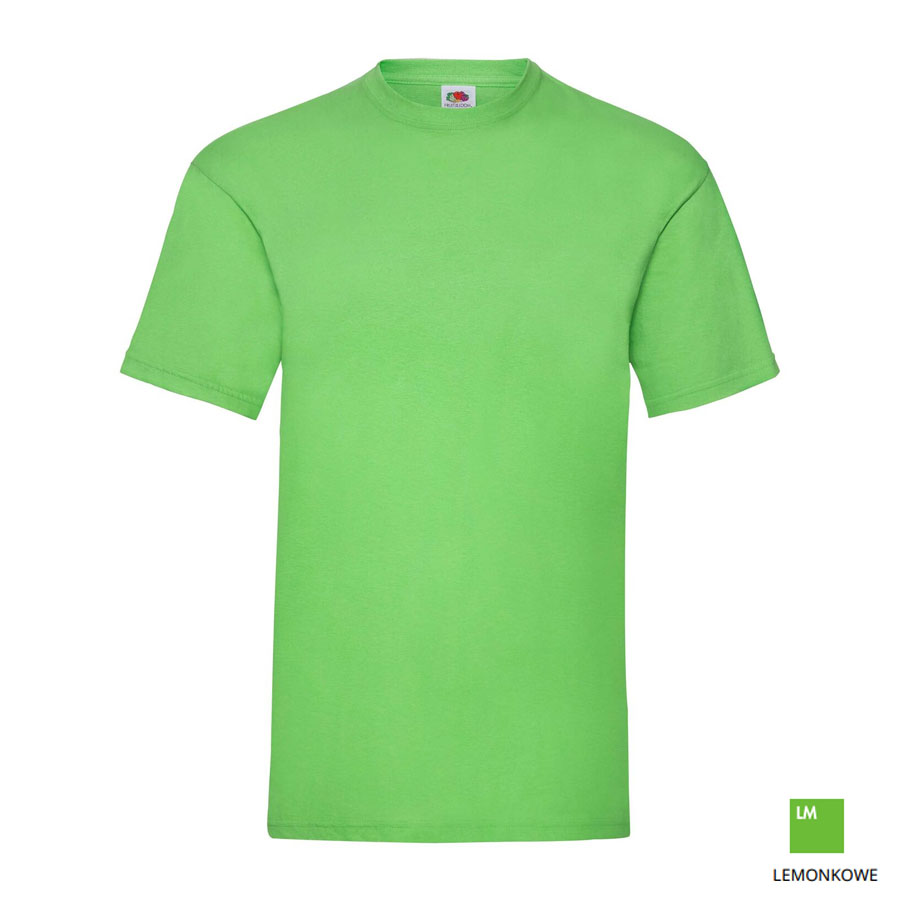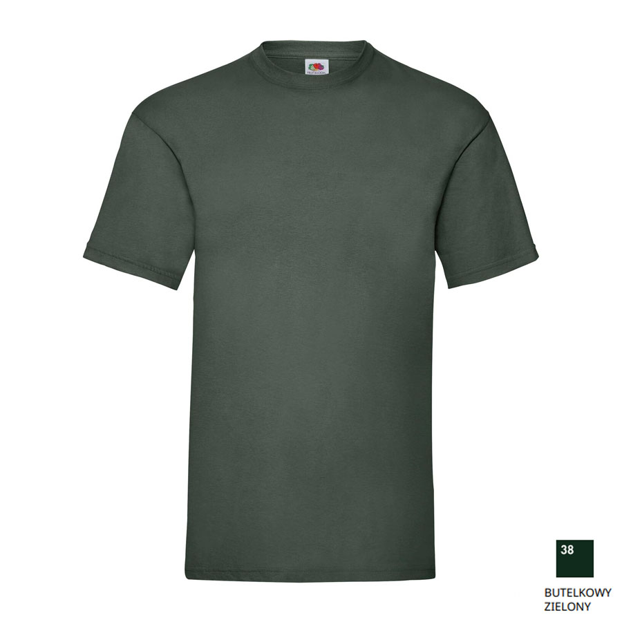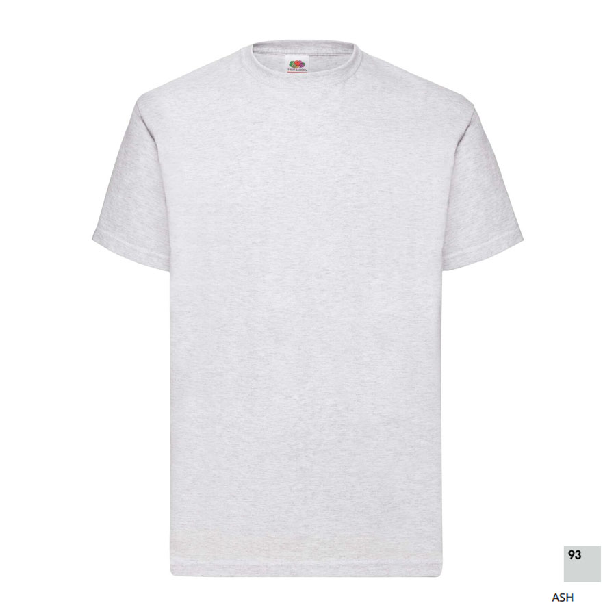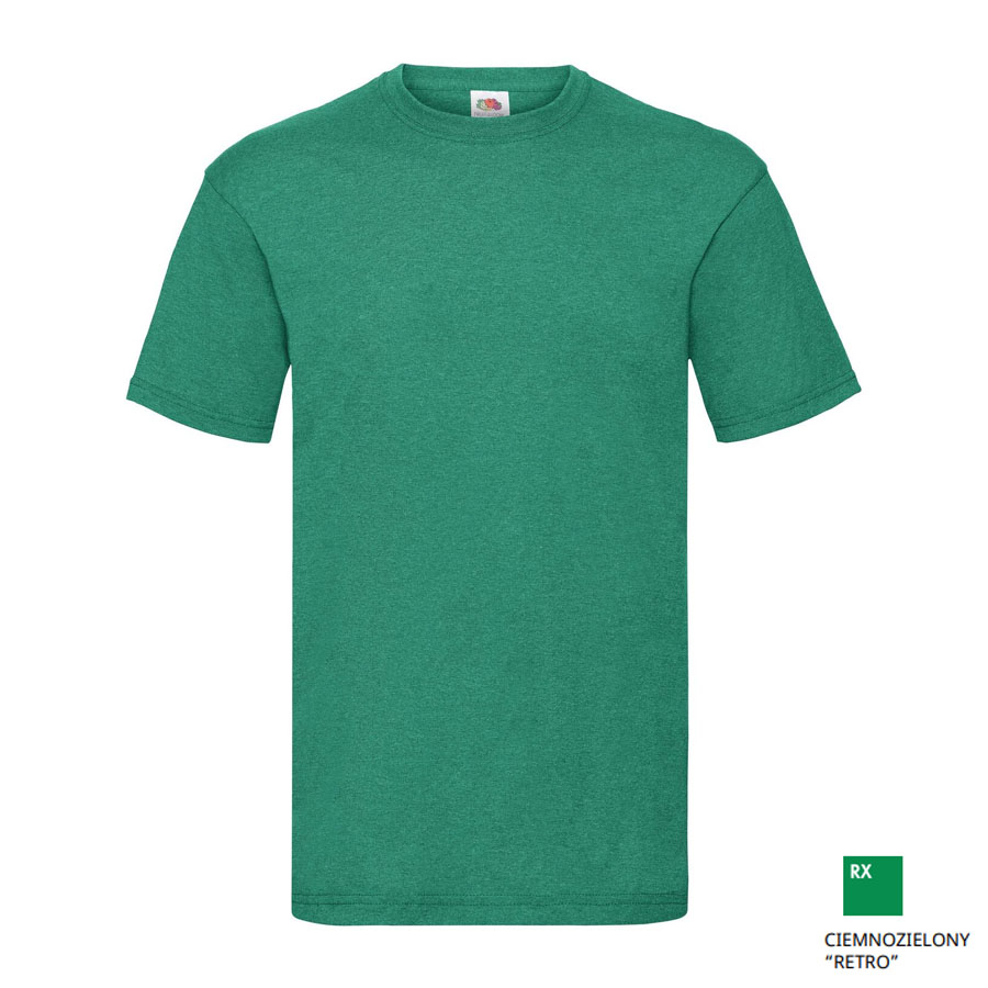 Koszulki męskie Fruit of the Loom o gramaturze 160/165g. Wokół szyi ściągacz z dodatkiem Lycry, połączony z koszulką podwójnym szwem, zszyty w dwóch miejscach. Rękawy oraz dół koszulki zakończone podwójnym ściegiem. Na karku taśma wzmacniająca. Bez szwów bocznych.