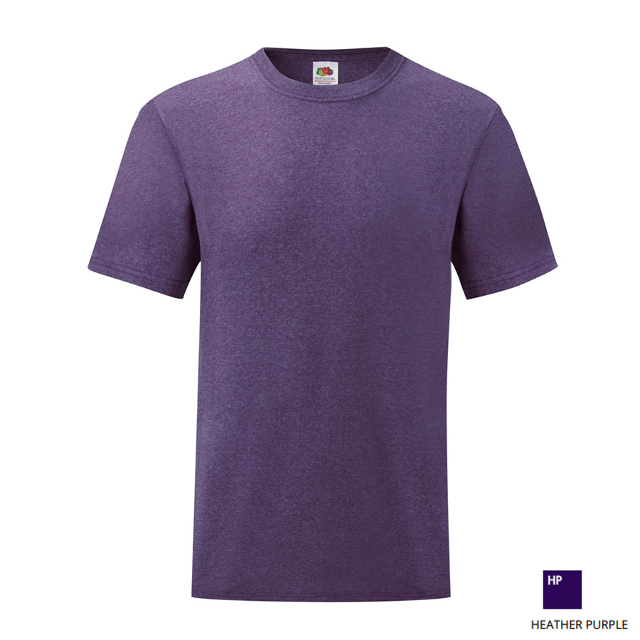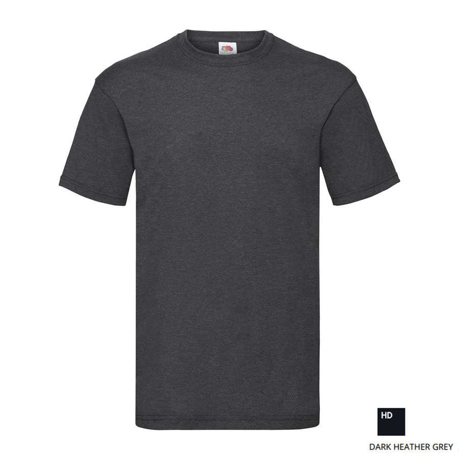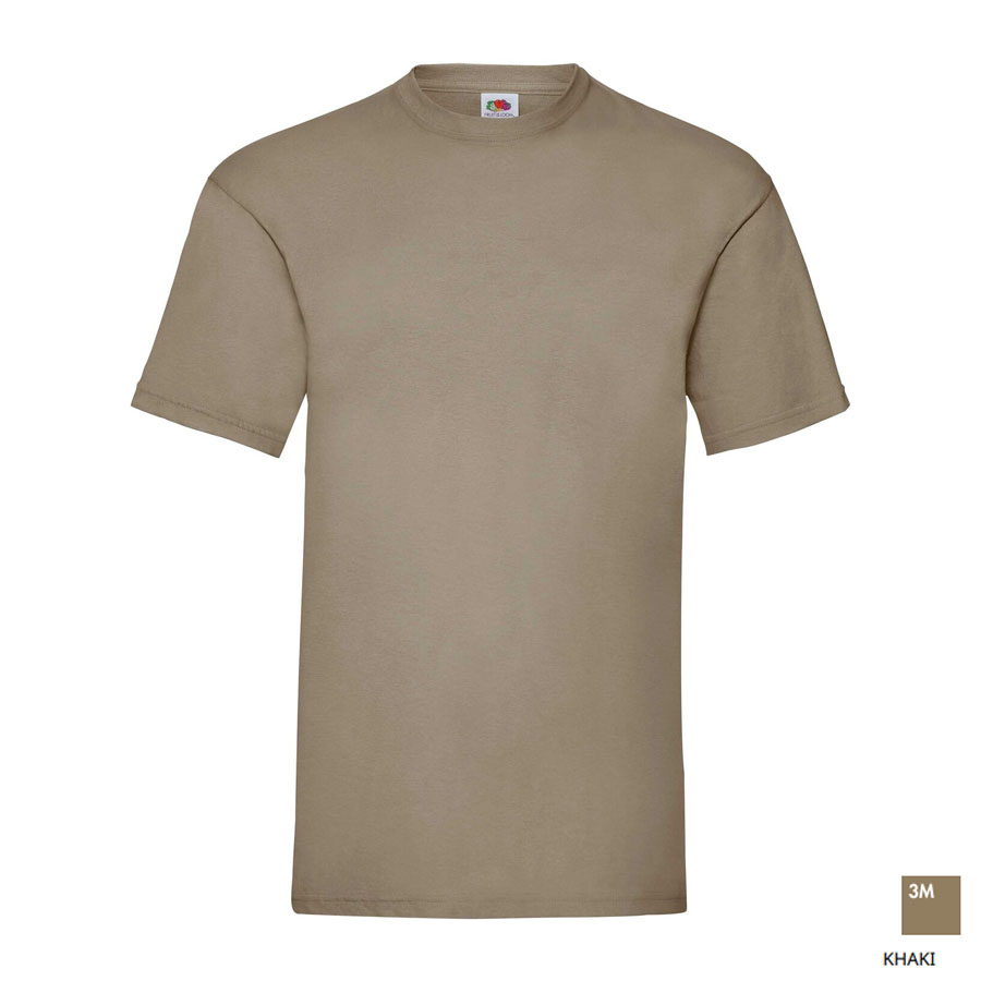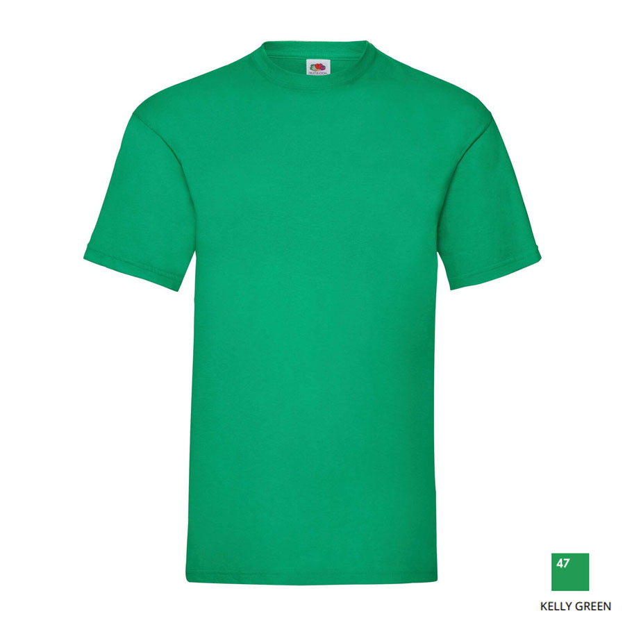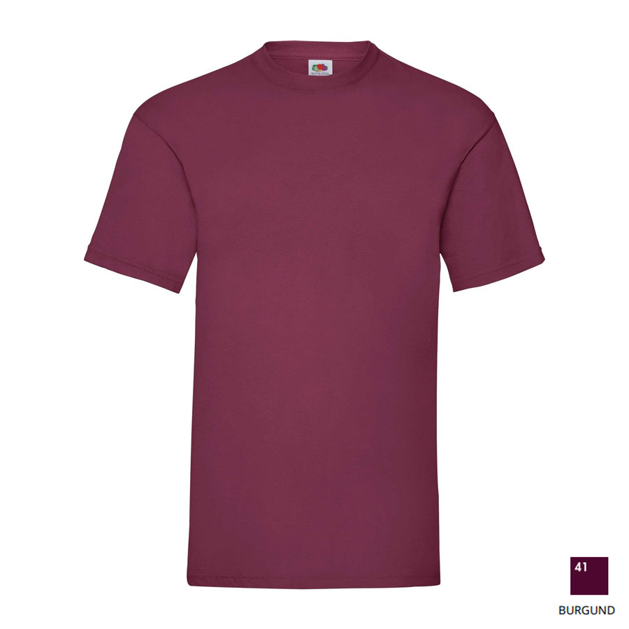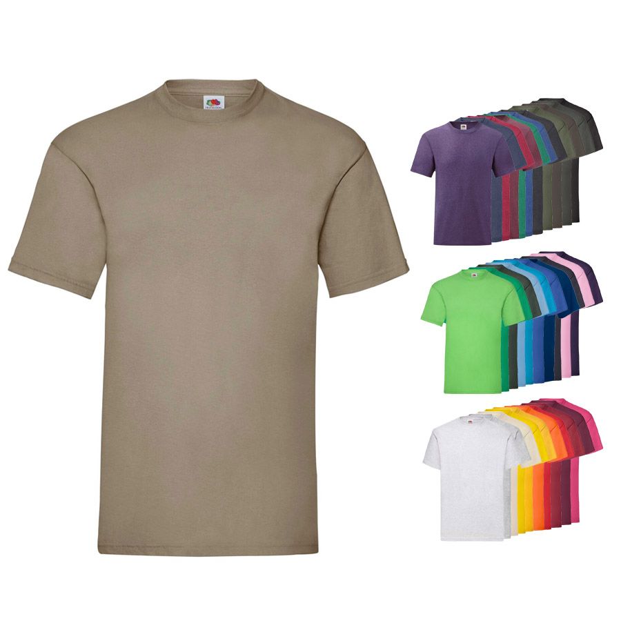 Koszulki męskie Fruit of the Loom o gramaturze 160/165g. Wokół szyi ściągacz z dodatkiem Lycry, połączony z koszulką podwójnym szwem, zszyty w dwóch miejscach. Rękawy oraz dół koszulki zakończone podwójnym ściegiem. Na karku taśma wzmacniająca. Bez szwów bocznych.