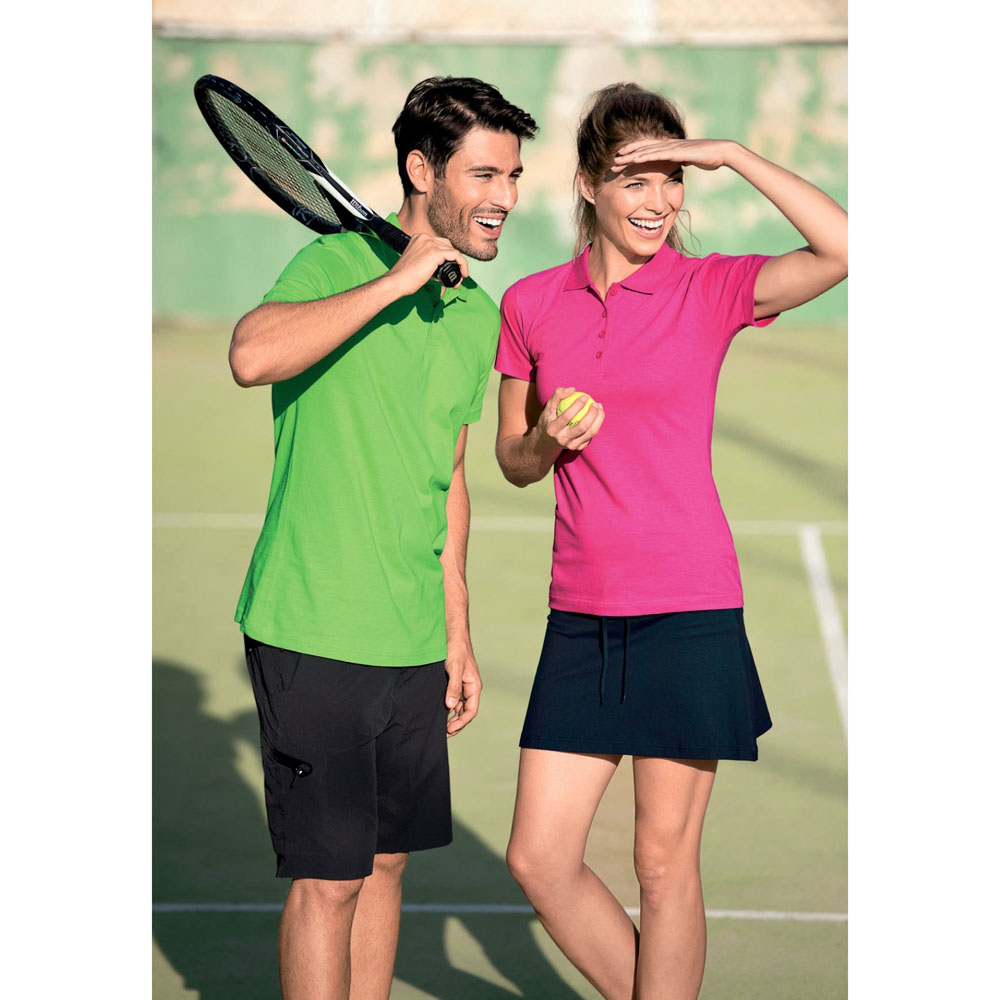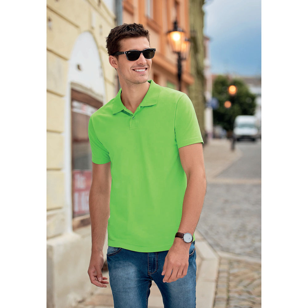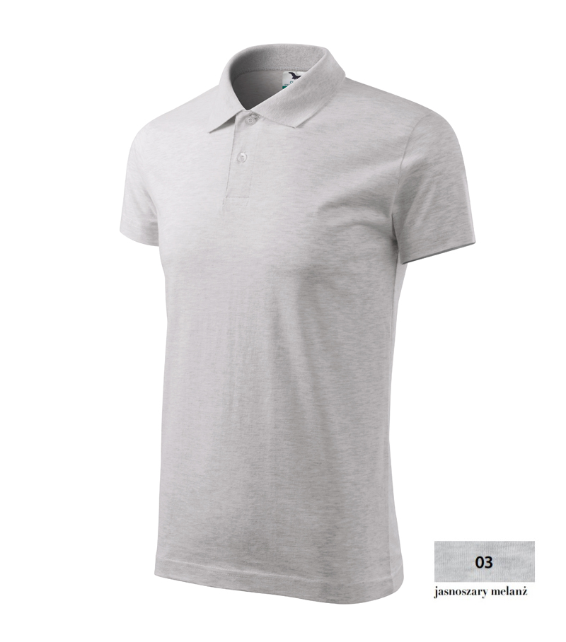 Koszulka polo o wysokiej gramaturze z gładkiego materiału , szczególnie nadająca się pod nadruki oraz hafty. Kołnierzyk i dwa guziczki w kolorze koszulki, podwójne szwy, wzmacniający ramienny pasek, korpus z bocznymi szwami. Wyróżnia się świetną jakością materiału i szycia.