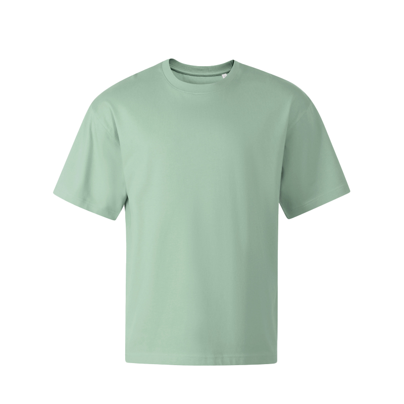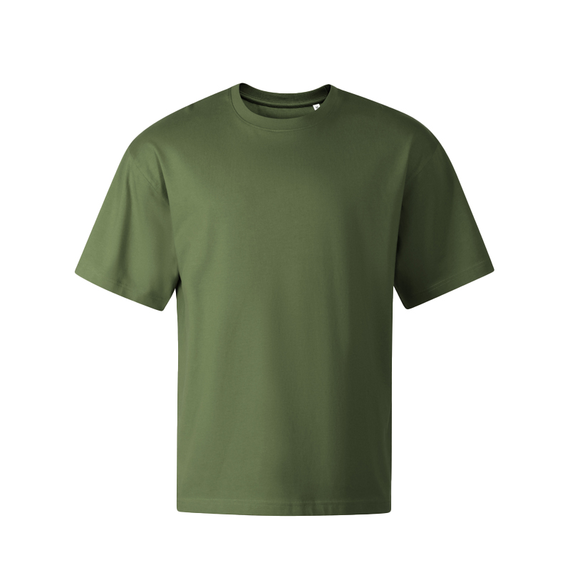 dekolt wykończony dzianiną ściągaczową 1:1 z dodatkiem 5 % elastanu. Lamówka na karku wzmocniona taśmą z materiału wierzchniego, szew wzmacniający na ramionach. Przedłużona linia ramion. Obróbka enzymatyczna