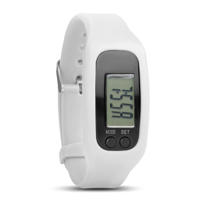 Krokomierz z paskiem. Zawiera licznik kroków, dystansu, czasu oraz spalonych kalorii. W zestawie 1 bateria AG10.