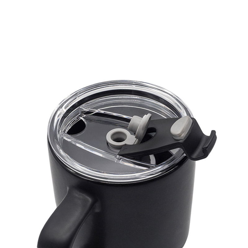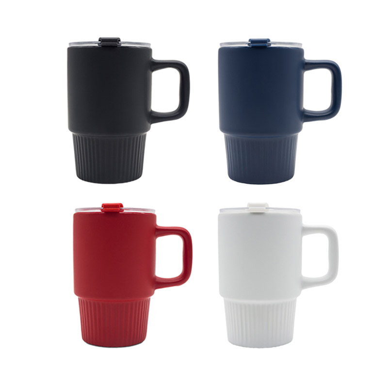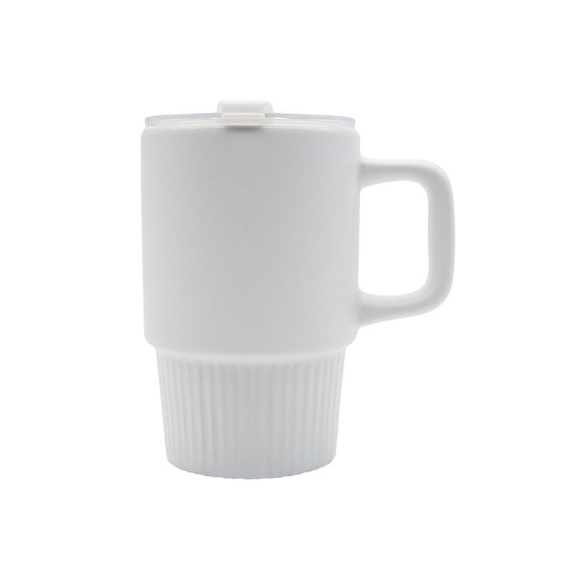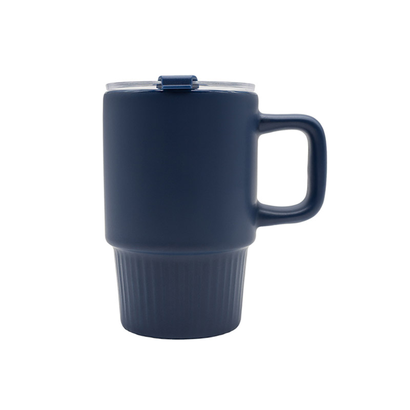 Kubek ceramiczny (440 ml) w matowym wykończeniu. Wyposażony w praktyczną, przezroczystą pokrywkę. Minimalistyczny i nowoczesny, idealny do biura i domu.