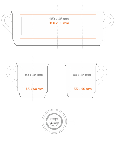 Kubek opracowany na potrzeby jarmarków świątecznych. Posiada klasyczny kształt uchwytu oraz prosty korpus, umożliwiający sztaplowanie. Kubek posiada znacznik cechy ukazującej pojemność 200ml oraz znak podmiotu odpowiedzialnego za wprowadzenie na rynek. Oznaczenia są zgodne z wymogami Unii Europejskiej