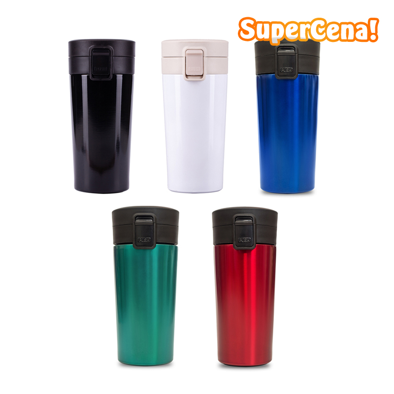 Szczelny kubek izotermiczny o pojemności 350 ml. Dwie ścianki ze stali nierdzewnej, wewnątrz stal 18/8 o podwyższonej jakości. Próżnia pomiędzy ściankami zapewnia bardzo dobre właściwości termoizolacyjne. Funkcjonalny przycisk open/close z blokadą.