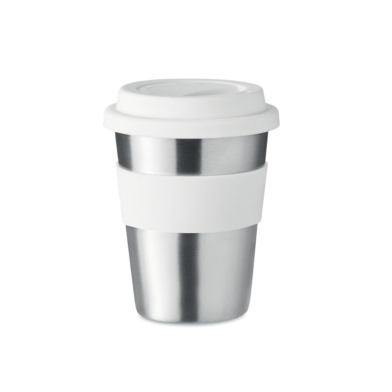 Jednościenny kubek ze stali nierdzewnej z silikonową pokrywką i uchwytem. Pojemność 350 ml. Ponieważ jest to kubek z pojedynczą ścianką, może dochodzić do wymiany ciepła.