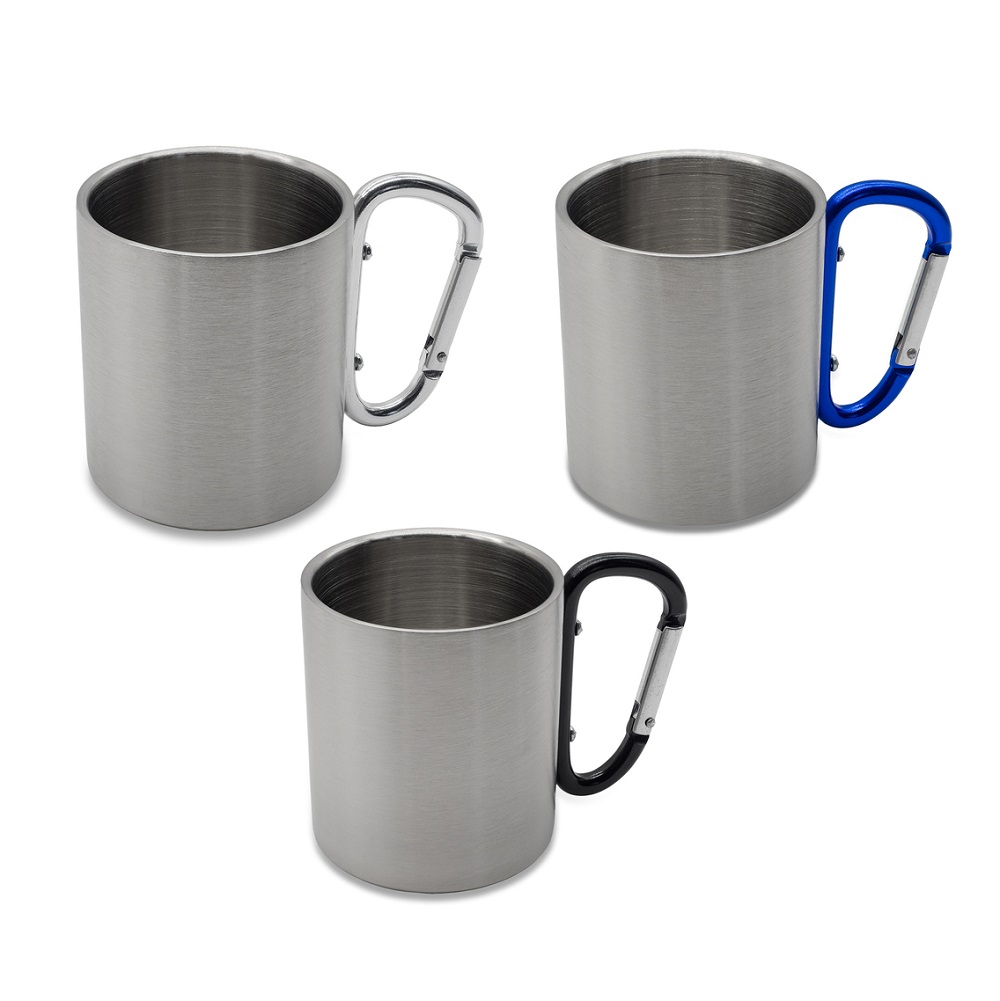 Kubek 220ml o podwójnych ściankach, ze stali nierdzewnej. Posiada uchwyt w formie karabińczyka.