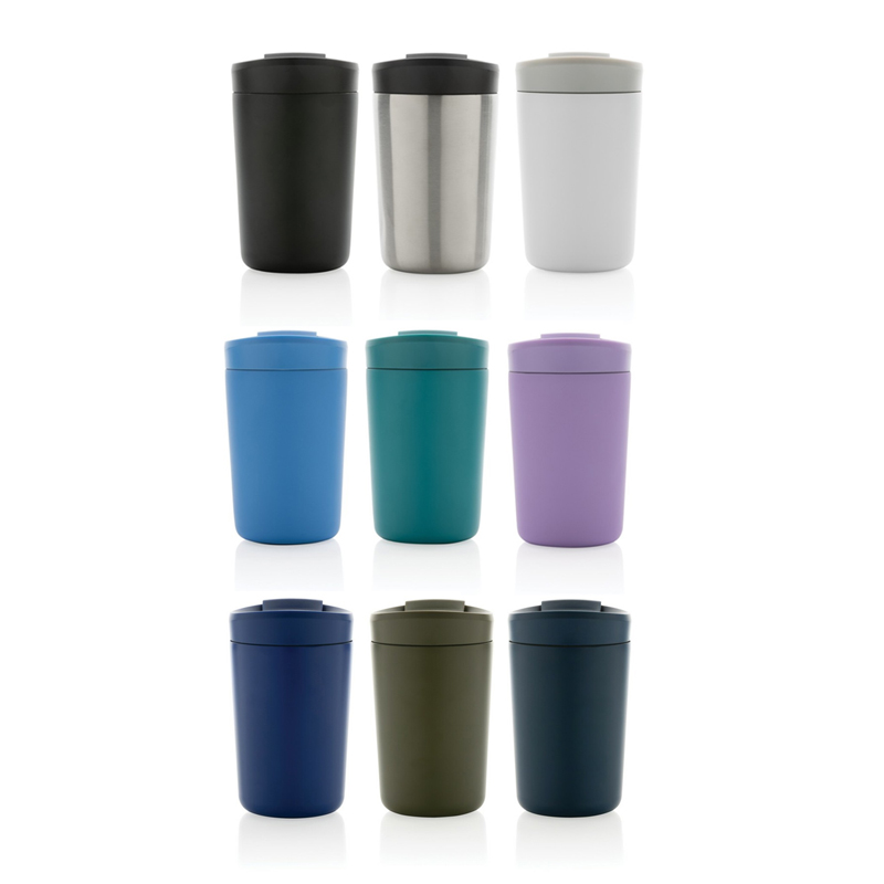 Kubek termiczny 300 ml, podwójne ścianki ze stali nierdzewnej z próżnią pomiędzy, wykonany ze stali nierdzewnej z recyklingu z certyfikatem RCS, całkowita zawartość materiałów z recyklingu obliczona na podstawie wagi całkowitej przedmiotu: 71%, w pudełku z papieru kraftowego z certyfikatem FSC®, pudełko można wykorzystać jako stojak na telefon lub doniczkę