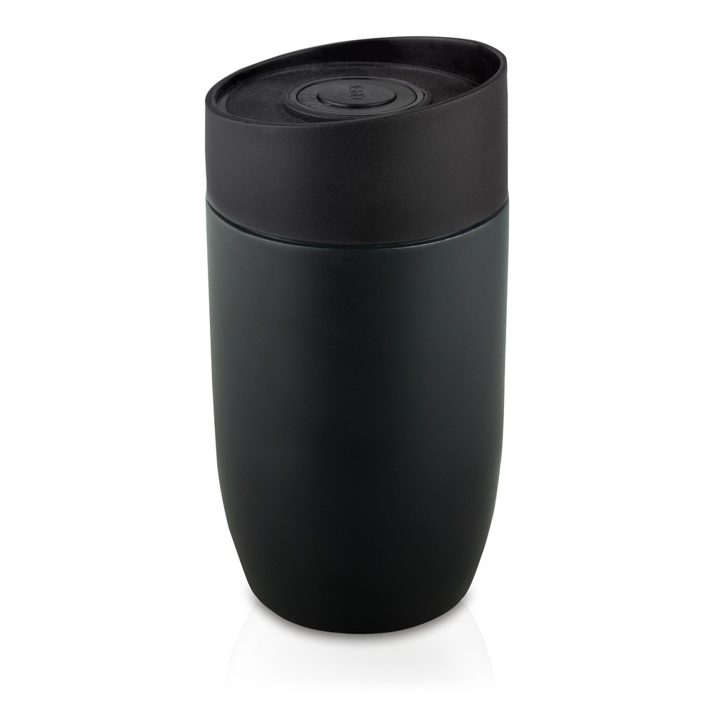Kubek termiczny 330 ml Air Gifts, posiada podwójne ścianki ze stali nierdzewnej z miedzianą izolacją próżniową, co spowalnia oddawanie temperatury na zewnątrz, zachowując funkcje termosu, plastikowe wieczko z przyciskiem otwarcia/zamknięcia ustnika umożliwiającym obsługę jedną ręką, matowe wykończenie, utrzymuje temperaturę napojów gorących do 15 godzin +leakproof