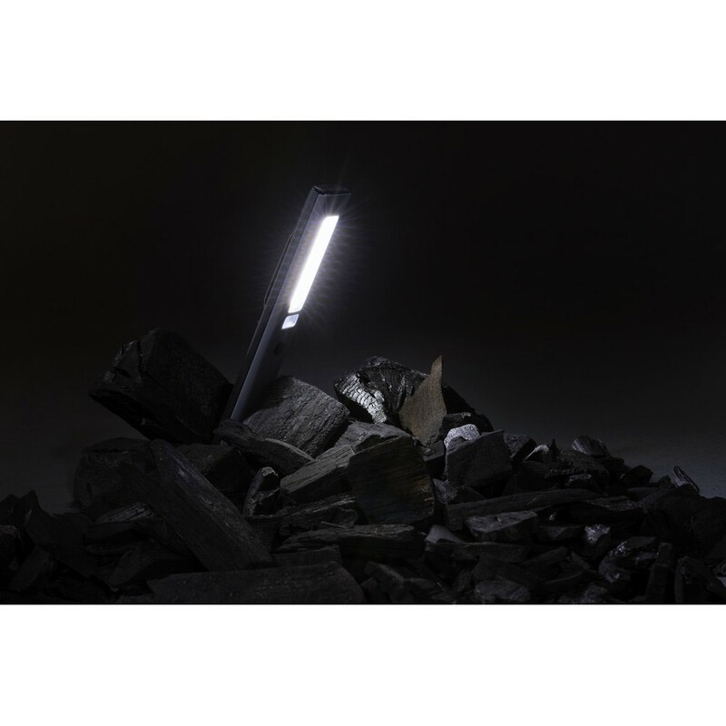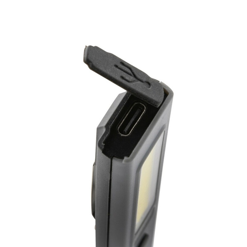 Latarka COB LED, lampka inspekcyjna, magnes z tyłu obudowy, jasność światła COB do 220 lumenów, LED do 80 lumenów, wykonana z materiałów z recyklingu, całkowita zawartość materiałów z recyklingu obliczona na podstawie wagi całkowitej przedmiotu: 36%, wbudowana bateria 520 mAh, 3 tryby świecenia, wejście USB typu C, czas świecenia na jednym ładowaniu do 3 godzin, ślad węglowy produktu: 0 kg CO2