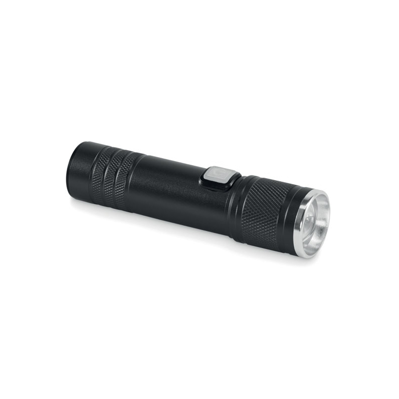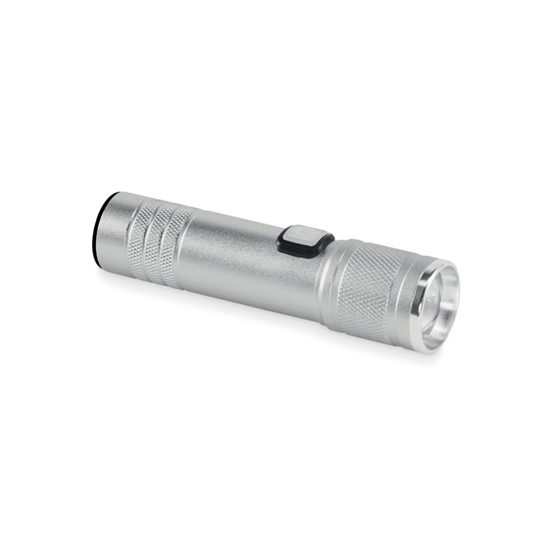 Latarka COB z możliwością ładowania, wykonana z aluminium pochodzącego z recyklingu. 100 lumenów z 3 ustawieniami światła i funkcją zoom. Wbudowany akumulator o pojemności 800 mAh. Kabel do ładowania w zestawie.