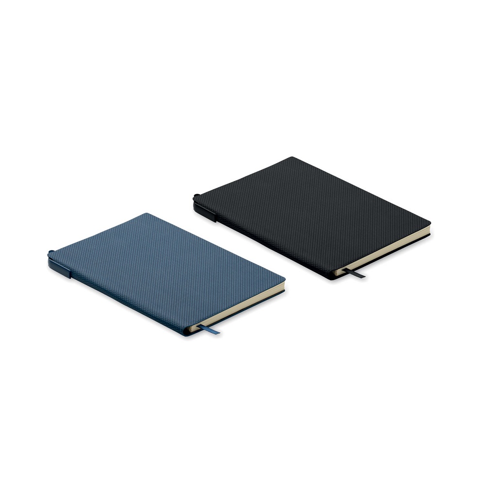 Notatnik A5 ze strukturalną okładką z PU i uchwytem na długopis z ABS wewnątrz grzbietu. Obwoluta. 160 stron w linie na papierze z recyklingu (80 arkuszy).