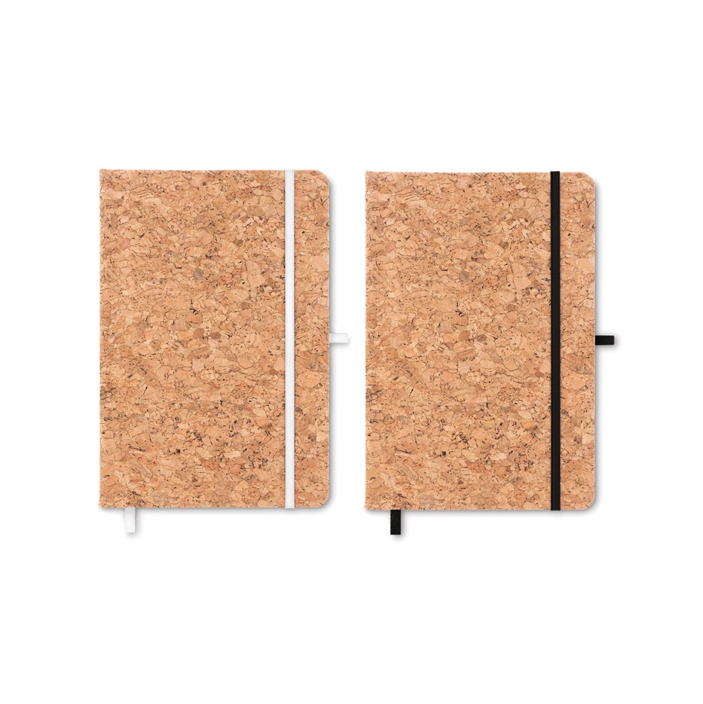 Notatnik A5 z twardą, korkową okładką. Oprawiony w pudełko. 192 kartki w linie (96 arkuszy). Elastyczny pasek zamykający, zakładka ze wstążki i elastyczny uchwyt na długopis.