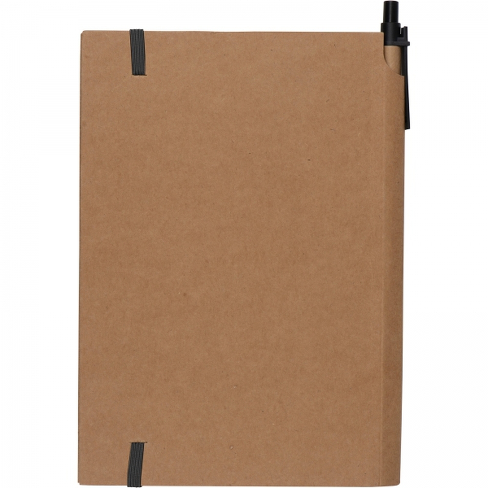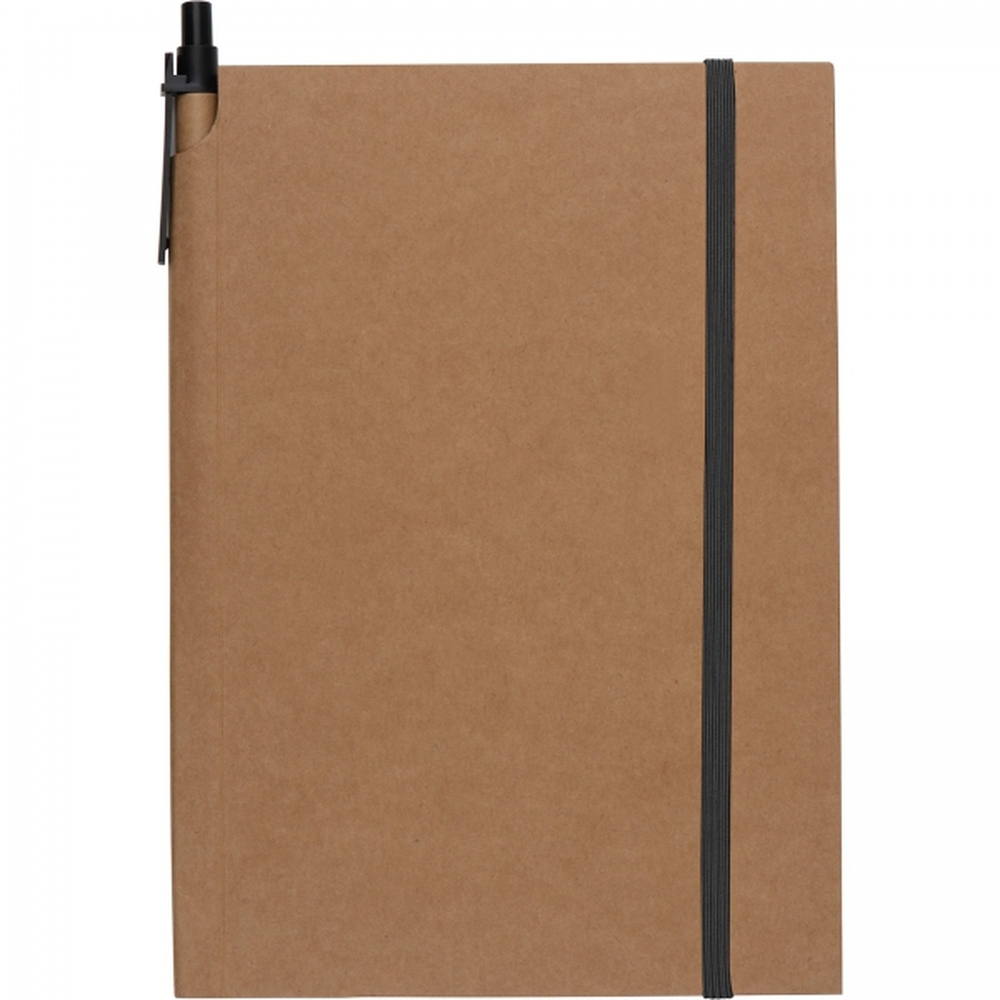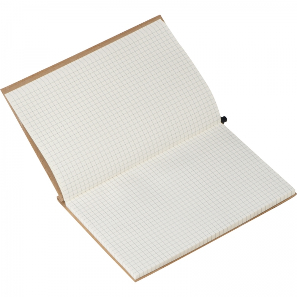 Notes (80 kartek w kratkę) z ekologiczną okładką i gumką. W zestawie z długopisem