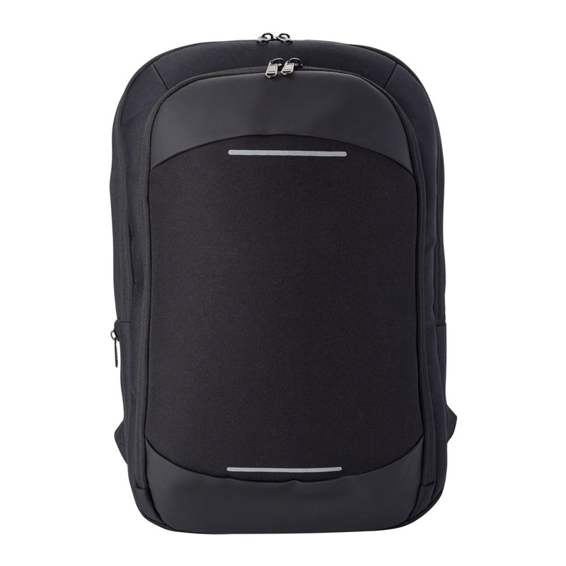 Plecak, główna przegroda i przednia kieszeń zamykana na zamek błyskawiczny, miękkie i regulowane paski na ramiona, ukryta kieszeń na zamek błyskawiczny w tylnej części plecaka, połyskliwe paski na przodzie