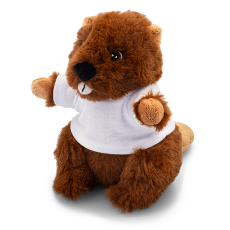 Bóbr z białą koszulką pod nadruk, nieoznakowana koszulka z poliestru jest pakowana oddzielnie, produkt wykonany z pluszu