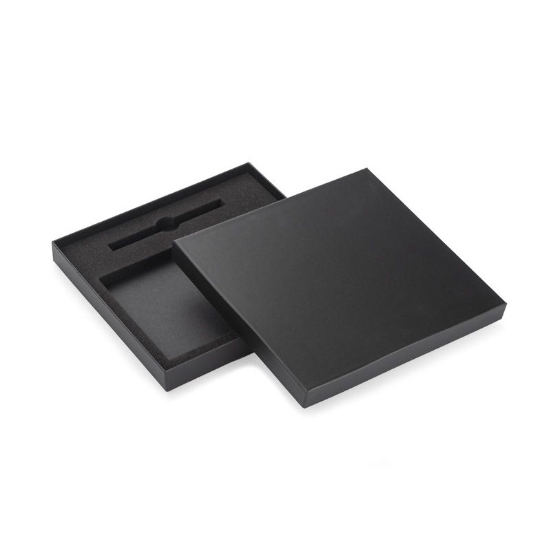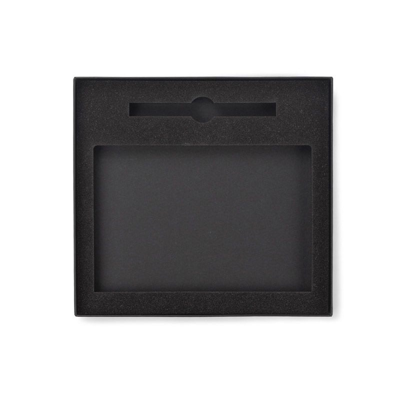 Czarne pudełko wykonane z mocnego, solidnego materiału, matowe dla lepszego efektu. Wewnątrz wyłożone jest pianką, Wykrojoną pod notes A5 i długopis. Idealne dla notesów FLAF, LORE czy VITAL oraz większości długopisów z oferty BC. Pudełko sprzedawane jest bez wyposażenia. Wyprodukowano w Polsce.