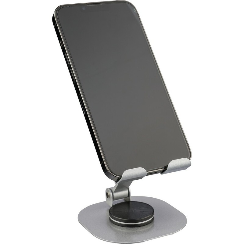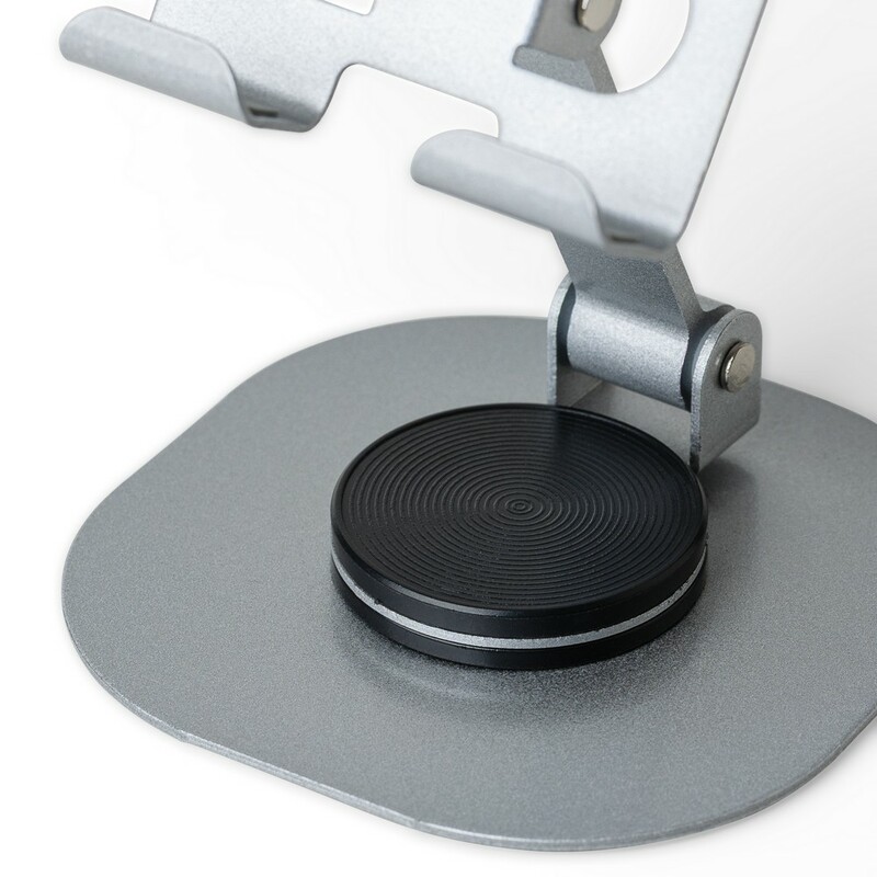 Stojak na telefon funkcją obrotu o 360 stopni, składany na płasko, zapakowany w białe pudełko, produkt wykonany z aluminium
