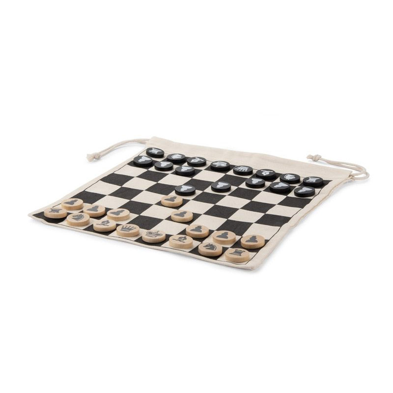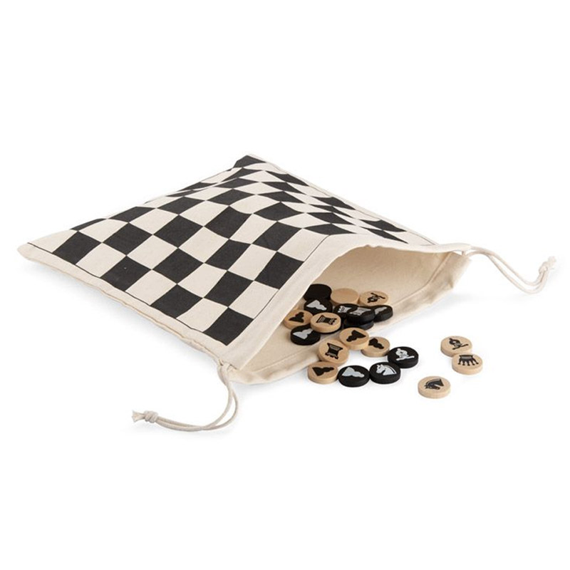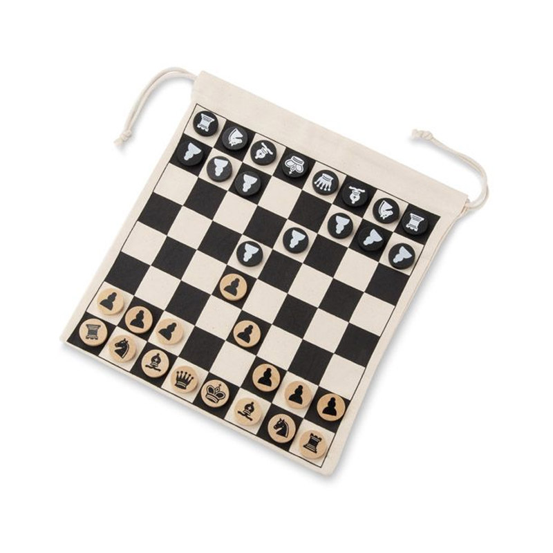 Szachy w woreczku ROYAL to popularna gra strategiczna w podróżnym wydaniu. Bawełniany worek z szachownicą posłuży jako plansza do gry oraz miejsce do przechowywania drewnianych pionków.