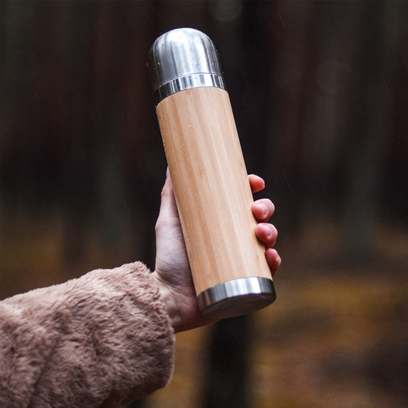Termos próżniowy z dwiema stalowymi ściankami w bambusowej obudowie. Wewnątrz termosu zastosowano stal nierdzewną 18/8 o podwyższonej jakości. Pojemność termosu 400 ml. Utrzymuje temperaturę powyżej 40°C przez 15 godzin.