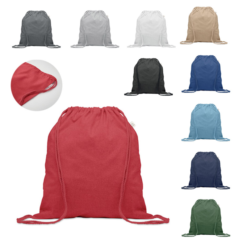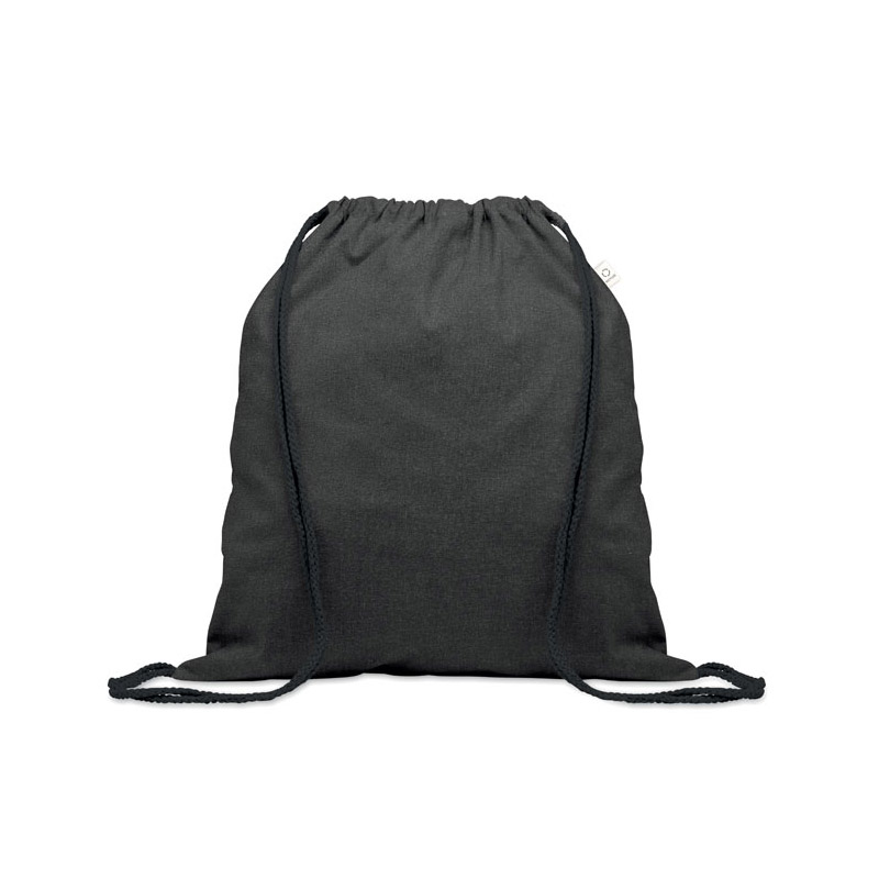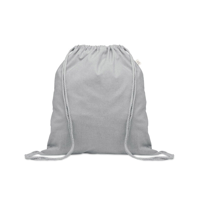 Worek ze sznurkiem wykonany z przetworzonej bawełny (70%) i RPET (30%). 140 gr/m². Ten produkt może się kurczyć po zadrukowaniu.